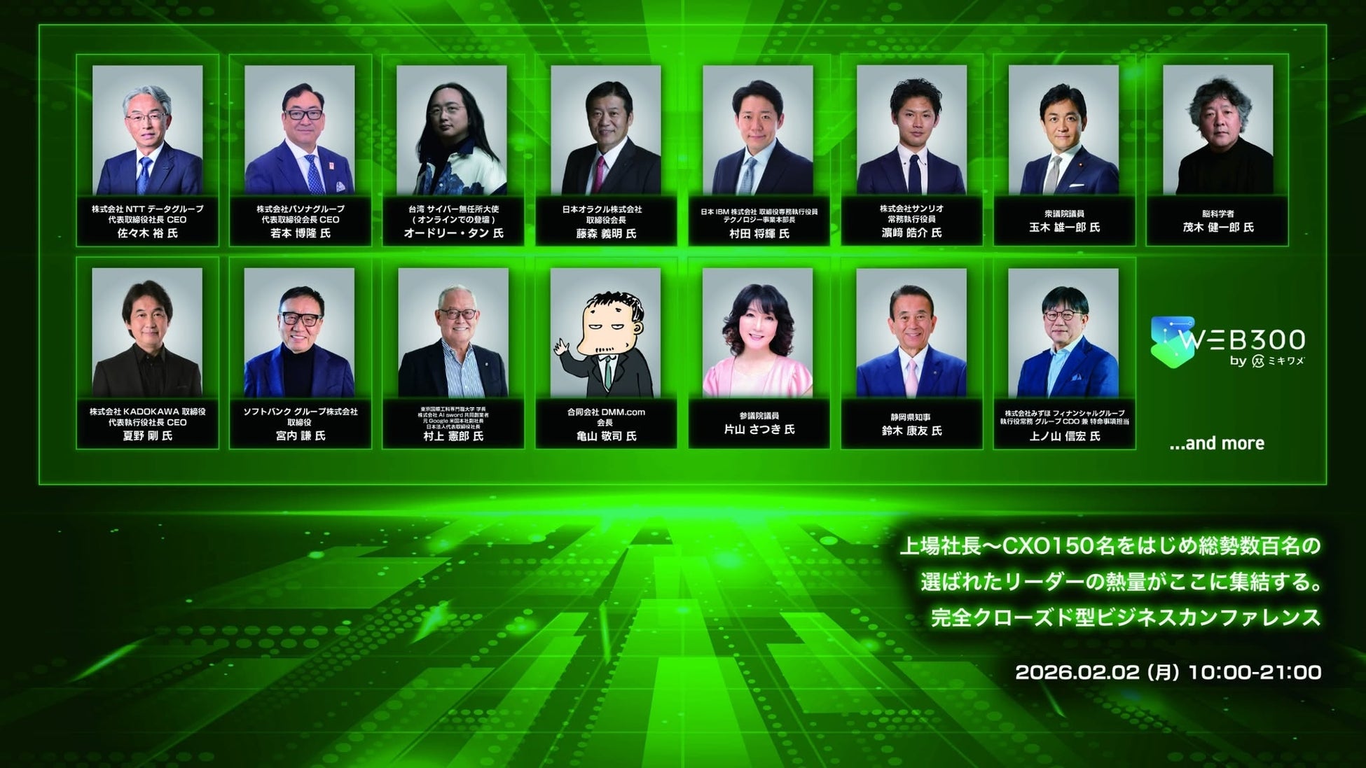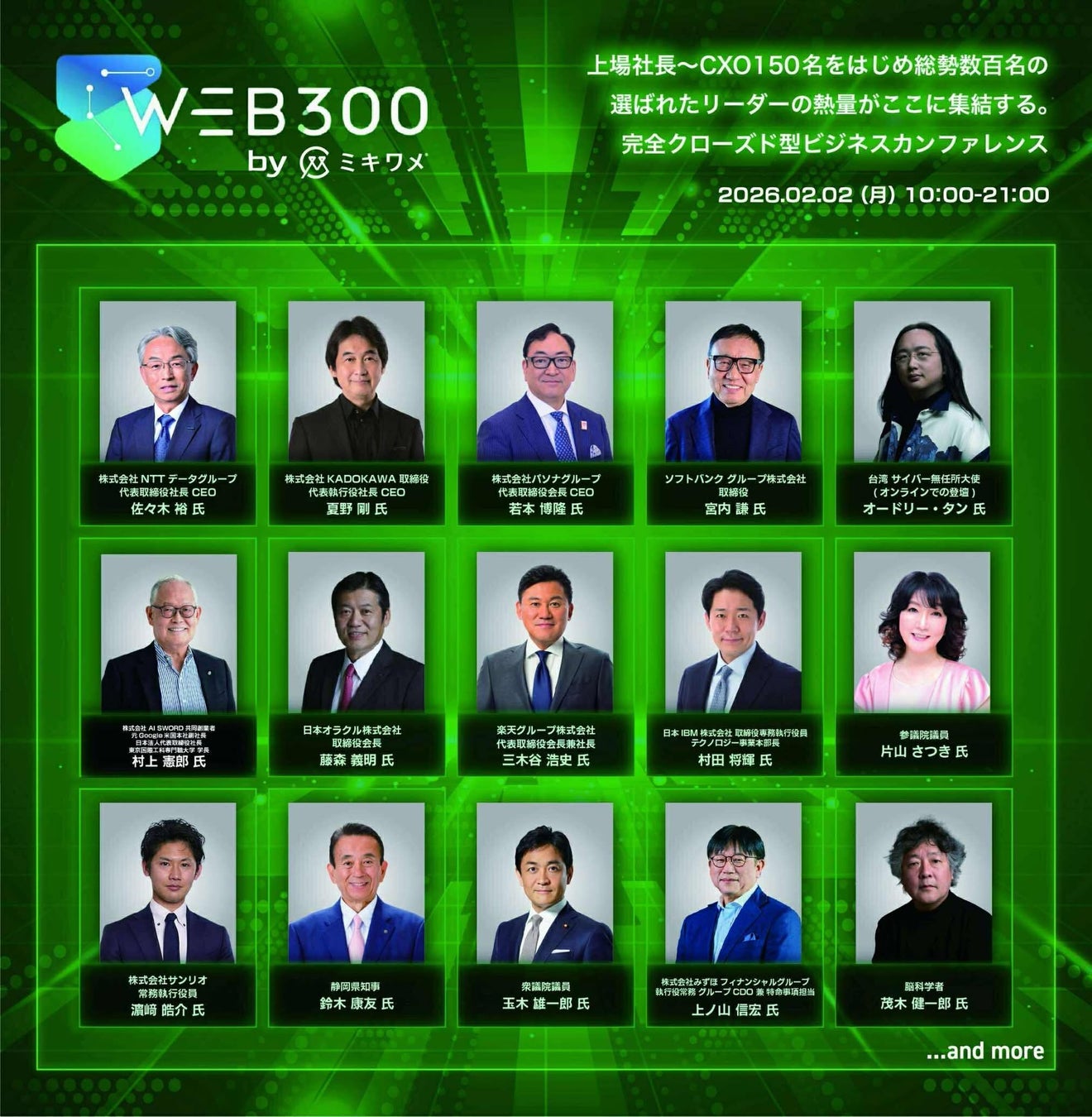 WEB300は、AI領域に関わる法人や個人の学びと交流の機会を創出している国内最大級のコミュニティです。監修には元Google日本法人代表の村上憲郎氏、後援には元台湾デジタル大臣のオードリー・タン氏などが参加しており、今回発表されるカンファレンスは、日本のデジタルおよびAI産業の発展に寄与することを目指しています。