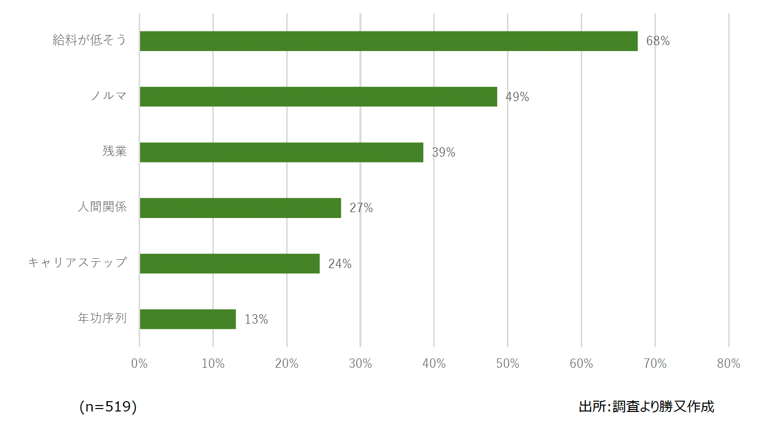 ファッション業界を選ぶ際の不安要素に関する設問への回答は「給料が低そう」が最も多く、次いで「ノルマの厳しさ」「残業」に回答が集中しました。業界の給料基準の低さを懸念し、最終的に別の業界を選ぶという傾向も見受けられます。ファッション企業は同業だけで比較せず、他業界の採用基準や条件を視野に入れ、これらの問題を解決しなければ、優秀な人材の確保が難しくなるということが言えます。 ※複数回答時、選択した項目を1とカウント
