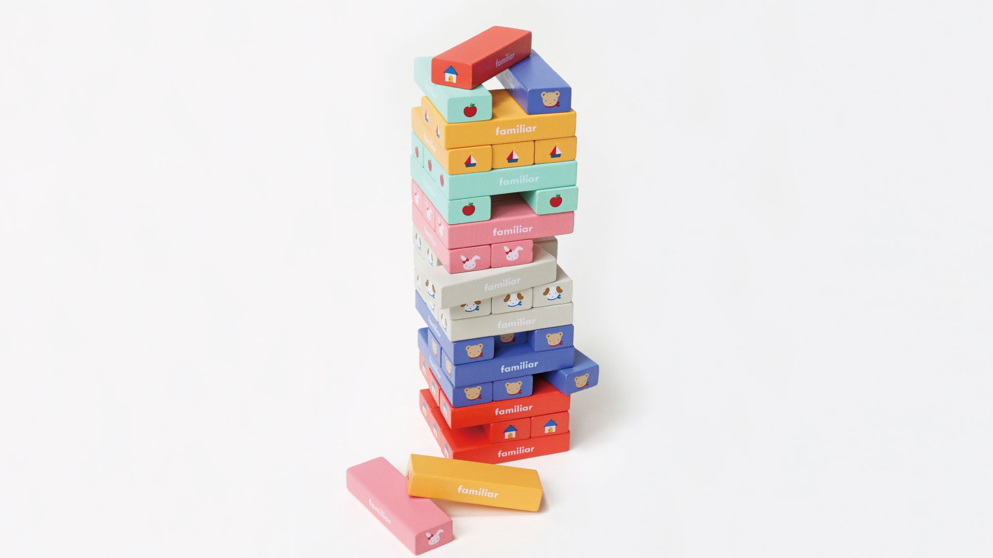 倒さないようにハラハラドキドキ!ファミリアらしい6種類のアートとカラーがかわいい、木製バラン