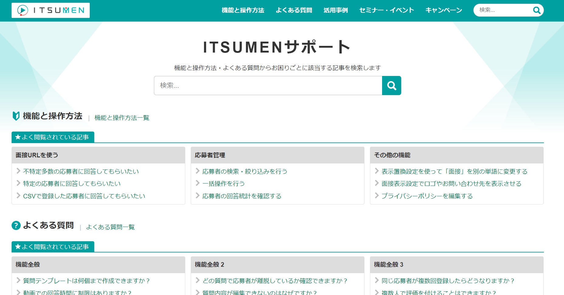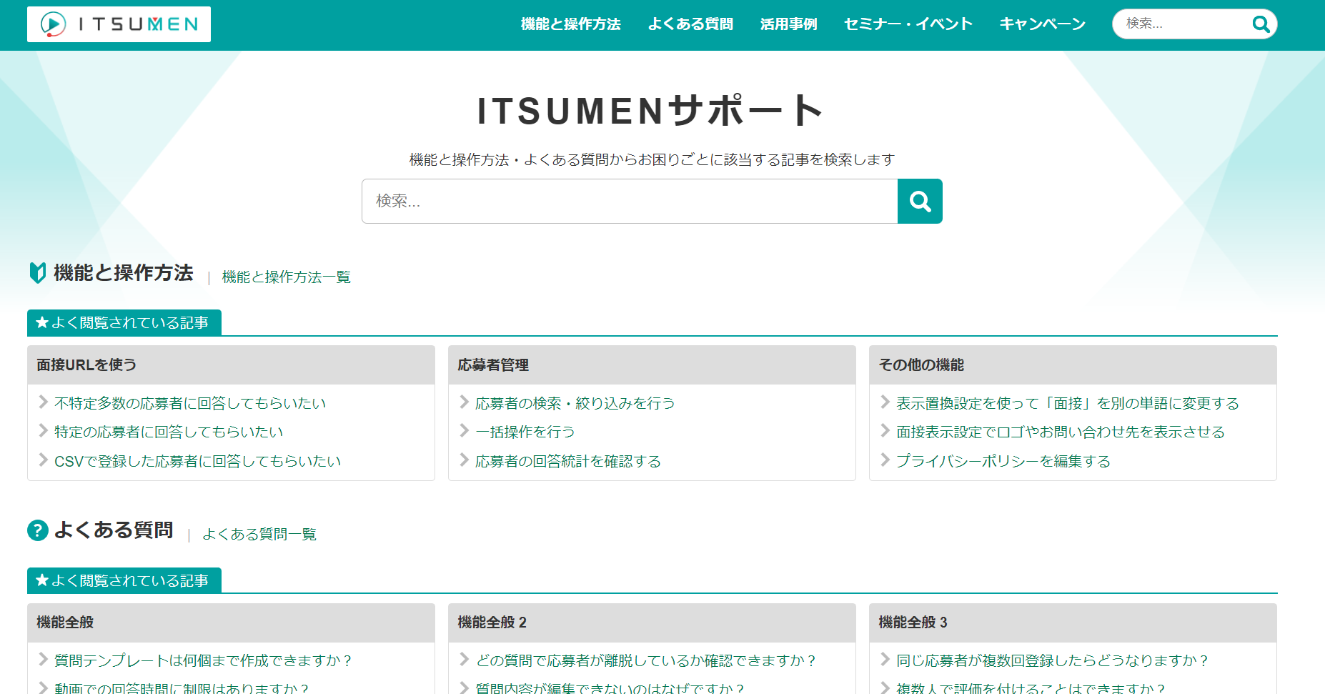 派遣応募者の取りこぼしを防ぐ!録画面接ツールITSUMEN(イツメン)のサポートサイトへの導線を追加しました。UIの改善でFAQや活用方法などが確認しやすくなりました。