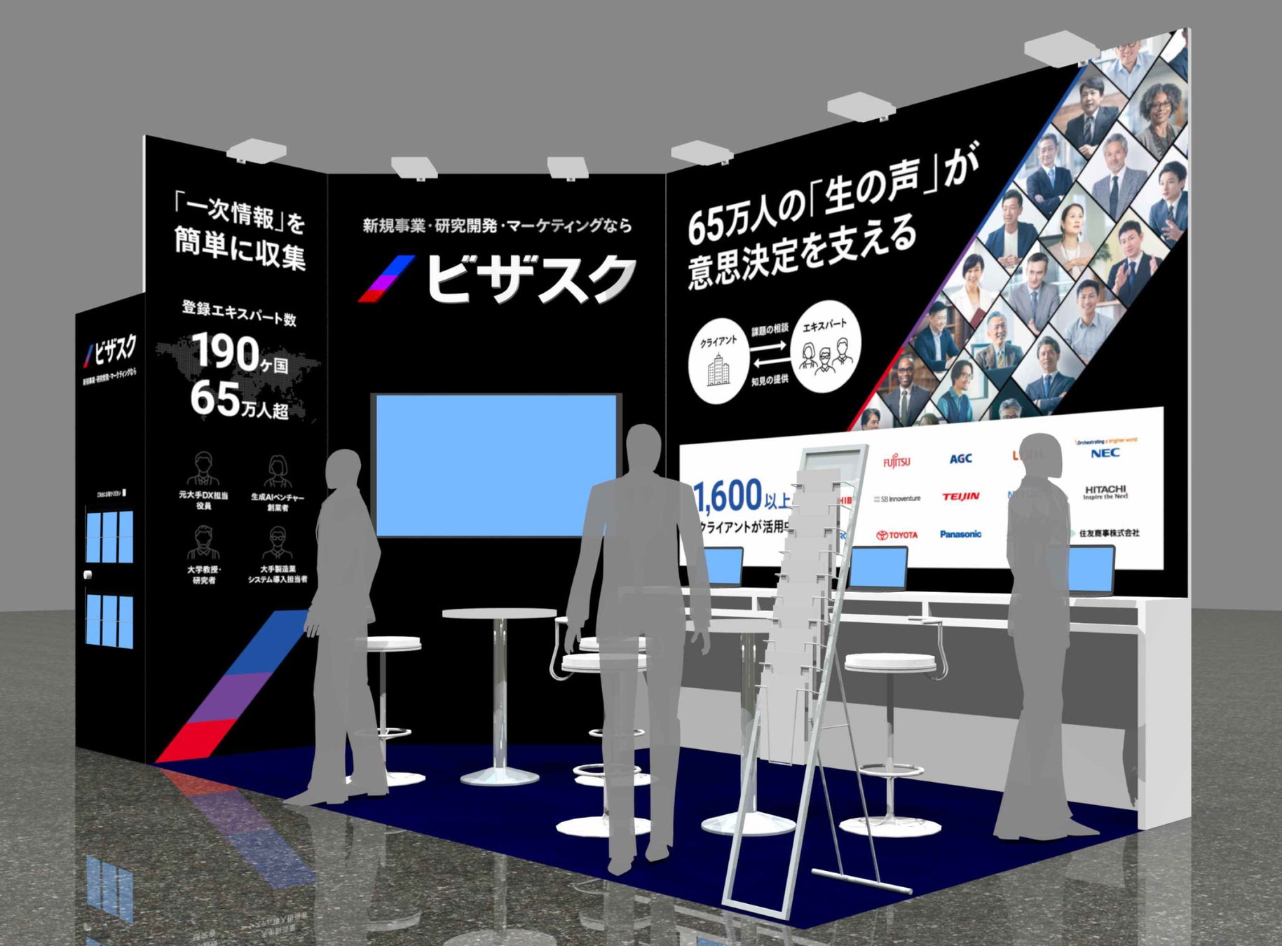 当社展示ブースでは、業界有識者に1時間からのインタビューができる「ビザスクinterview」をはじめ有識者の知見を効率的に収集できる各種調査サービスを複数ご紹介します。