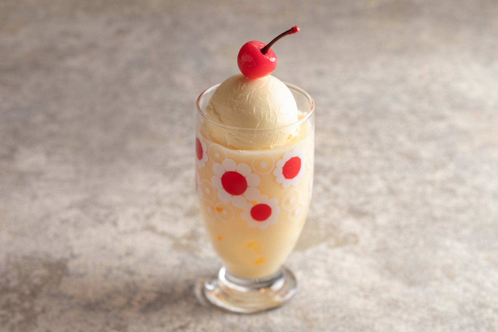 強運カラーのパールホワイトをイメージしたミルクセーキフロートは、甘くて優しい風味でお子さまから大人までお楽しみいただける味わいです。