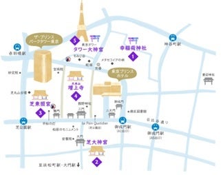 ザ・プリンス パークタワー東京と東京プリンスホテル周辺の芝公園エリアは、神社、寺院などのパワースポットが点在します。