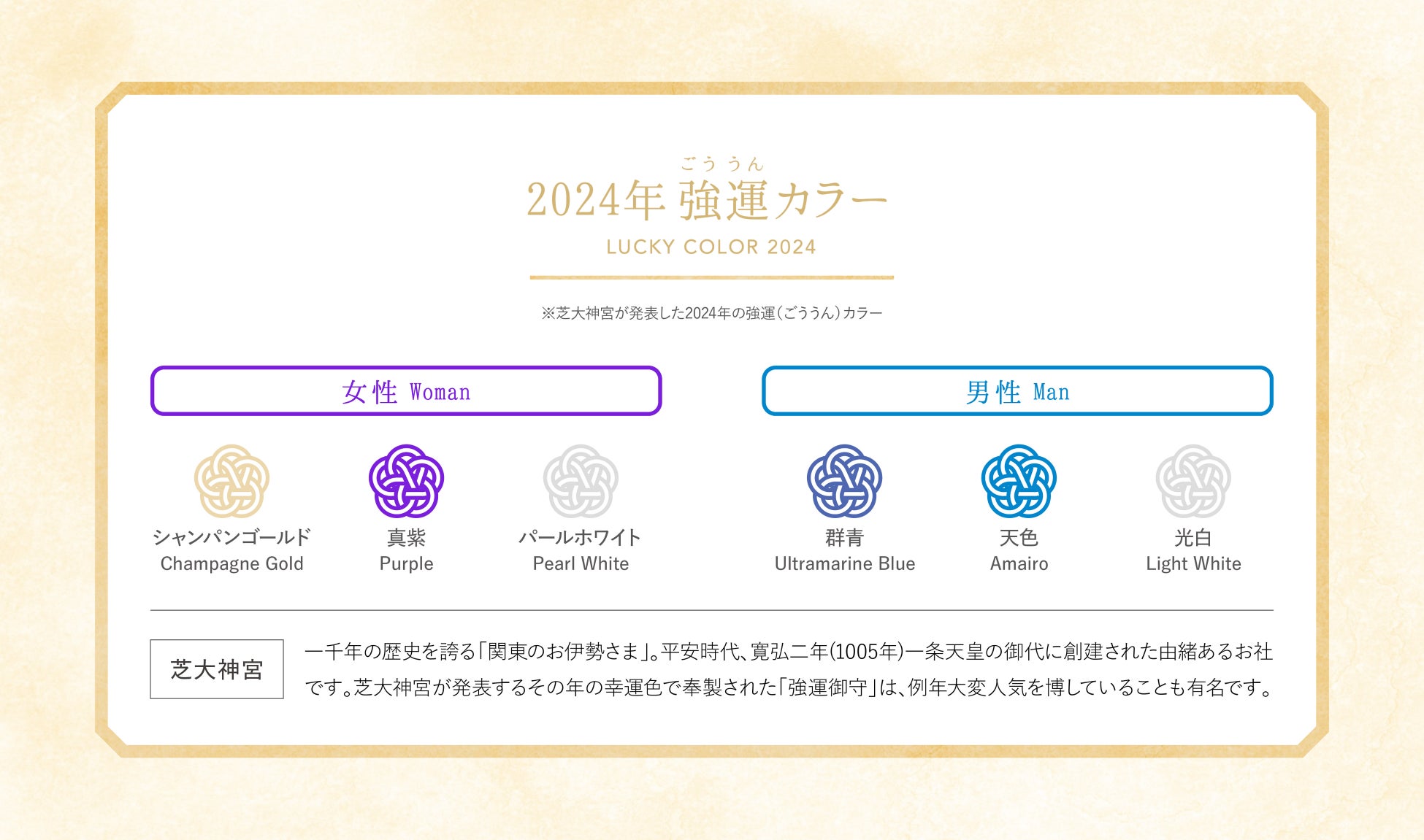 2024年は新たなことへチャレンジするのに最適な甲辰の年。縁起の良いとされる食材をふんだんに使い、ホテル近くの芝大神宮が毎年発表する各年のラッキーカラー“強運(ごううん)カラー”をメニューやお皿に取り入れ、輝かしい新しい年の幕開けをホテルでお過ごしいただけます。