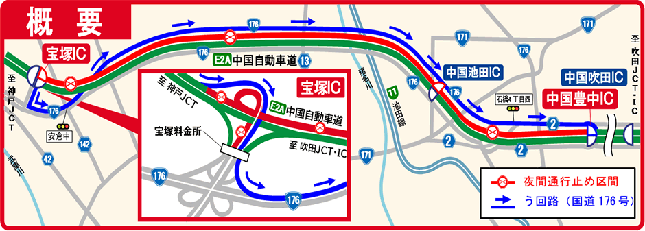 (4)E2A 中国自動車道(宝塚IC~中国豊中IC)上り線 夜間通行止め: