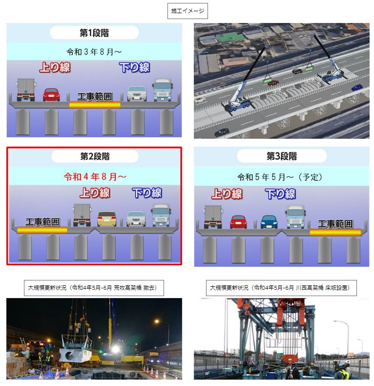 NEXCO西日本(大阪市北区、代表取締役社長:前川 秀和)では、安全・安心・快適を未来につなげるため、高速道路の長寿命化に向けた「高速道路リニューアルプロジェクト」に取り組んでおり、令和2年度よりE2A 中国自動車道(E2A 中国道) 吹田ジャンクション(JCT)~神戸JCT間で大規模なリニューアル工事を行っております。