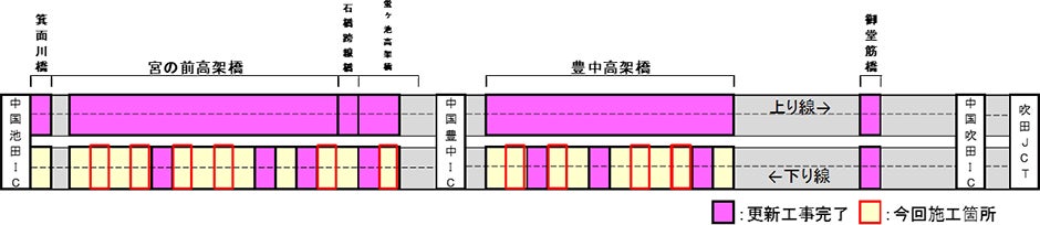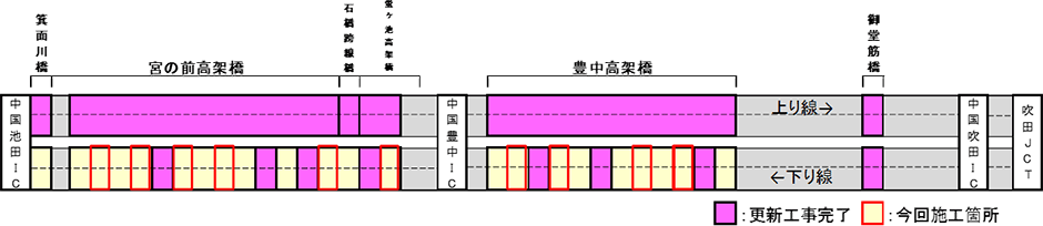吹田JCT~中国池田IC間 上り線の橋梁更新工事は令和4年3月12日をもって完了しました。