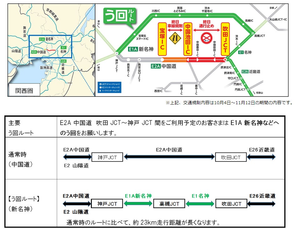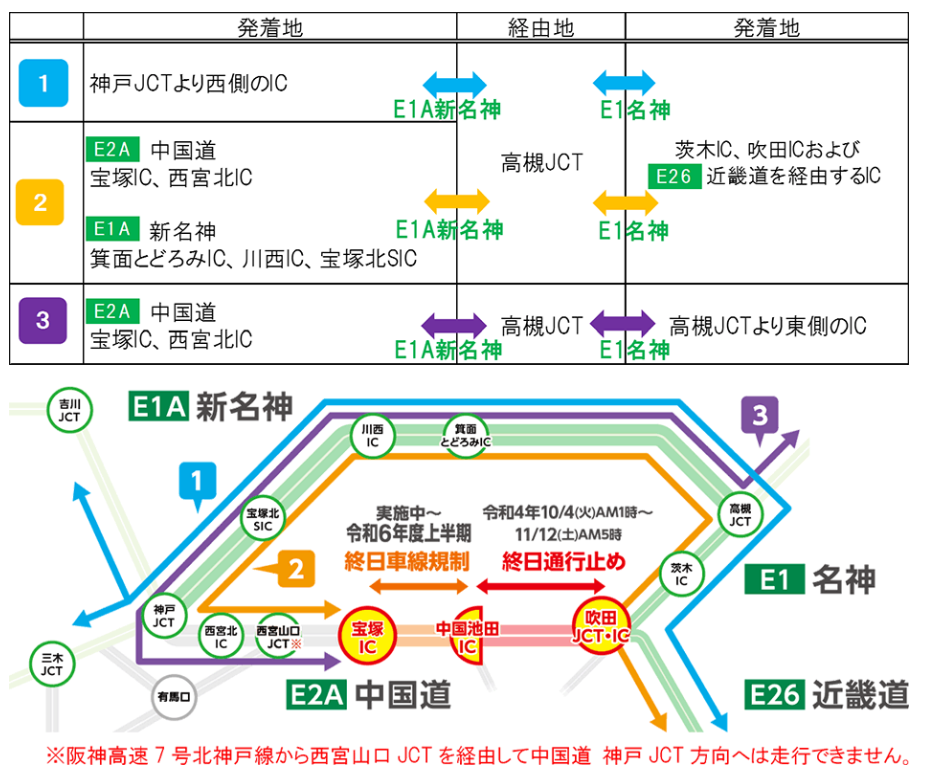 ― E1A 新名神高速道路などへのう回やご利用時間の変更をお願いします ―