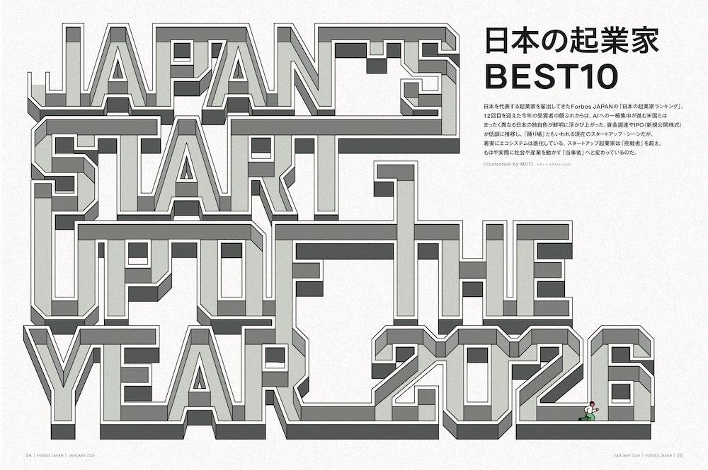 「日本の起業家ランキング」は、日本を代表する起業家を多数送り出してきたForbes JAPANの名物企画。特集内では、BEST10に選出されたすべての起業家のインタビュー記事や、2026年の活躍が期待される注目の日本発スタートアップ100選、VC業界が注目する「日本で最も影響力のあるベンチャー投資家ランキング」、Forbes米国版が次なるユニコーン企業25社を選出した「NEXT BILLION-DOLLER STARTUPS」の最新版も掲載。スタートアップ・シーンの今と未来が見えてくる決定版として、内容盛りだくさんでお届けします。
