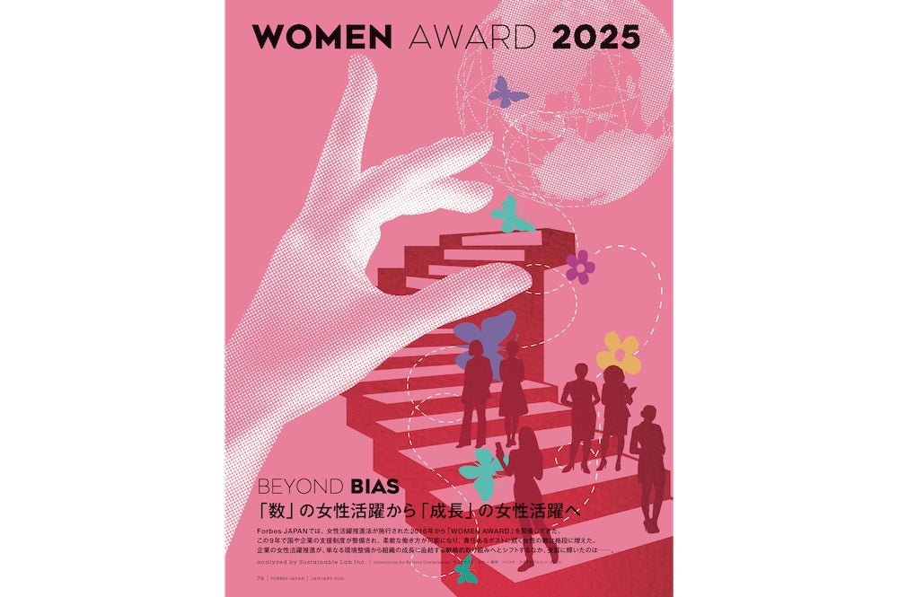 Forbes JAPANでは、女性活躍推進法が施行された2016年から「WOMEN AWARD」を開催してきました。企業の女性活躍推進が、単なる「環境整備」から組織の成長に直結する「戦略的取り組み」へとシフトするなか、今回受賞したのは、ジェンダーバイアスを超え、多様性を強みに変えた企業と女性たち。1,665社を対象とした企業ランキングの第1位に輝いたソニーをはじめ、男性の意識改革にも向き合って企業特別賞を受賞したファイザーなど、各社の取り組みを紹介します。