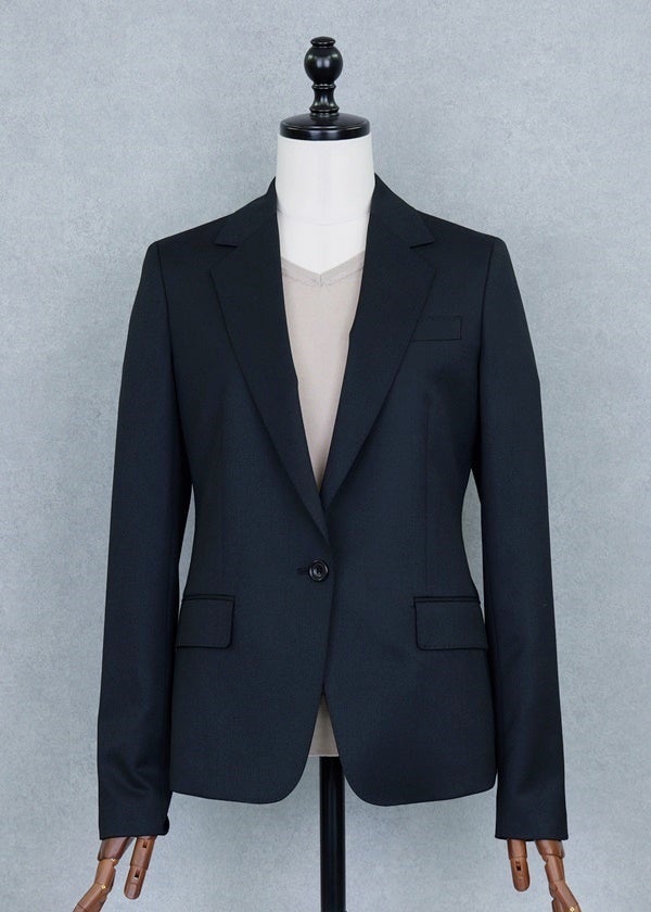 テーラードジャケットの2つボタンモデルです。トラディショナルな2つボタンのフォルムが気品を感じさせながらも、ウエストの曲線のラインが女性らしさも引き立たせてくれます。