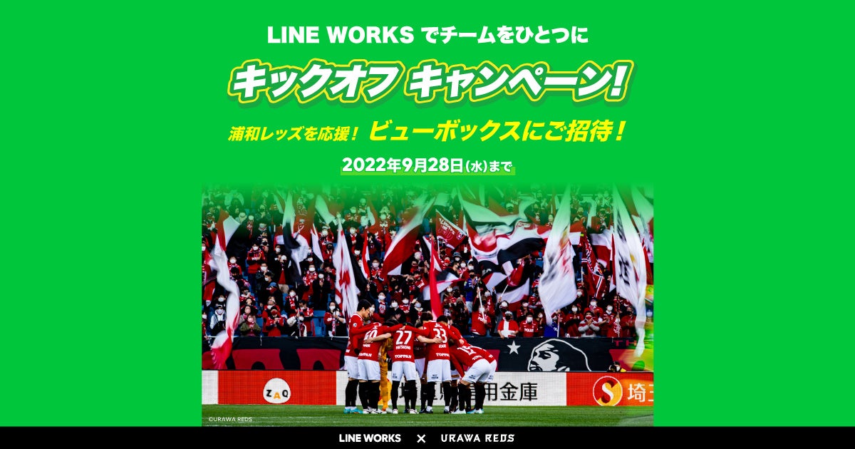 浦和レッズファミリーパートナーのLINE WORKS 3人以上で「LINE WORKS」を始めると特別席で浦和レッズを応援できる「キックオフキャンペーン」開始!