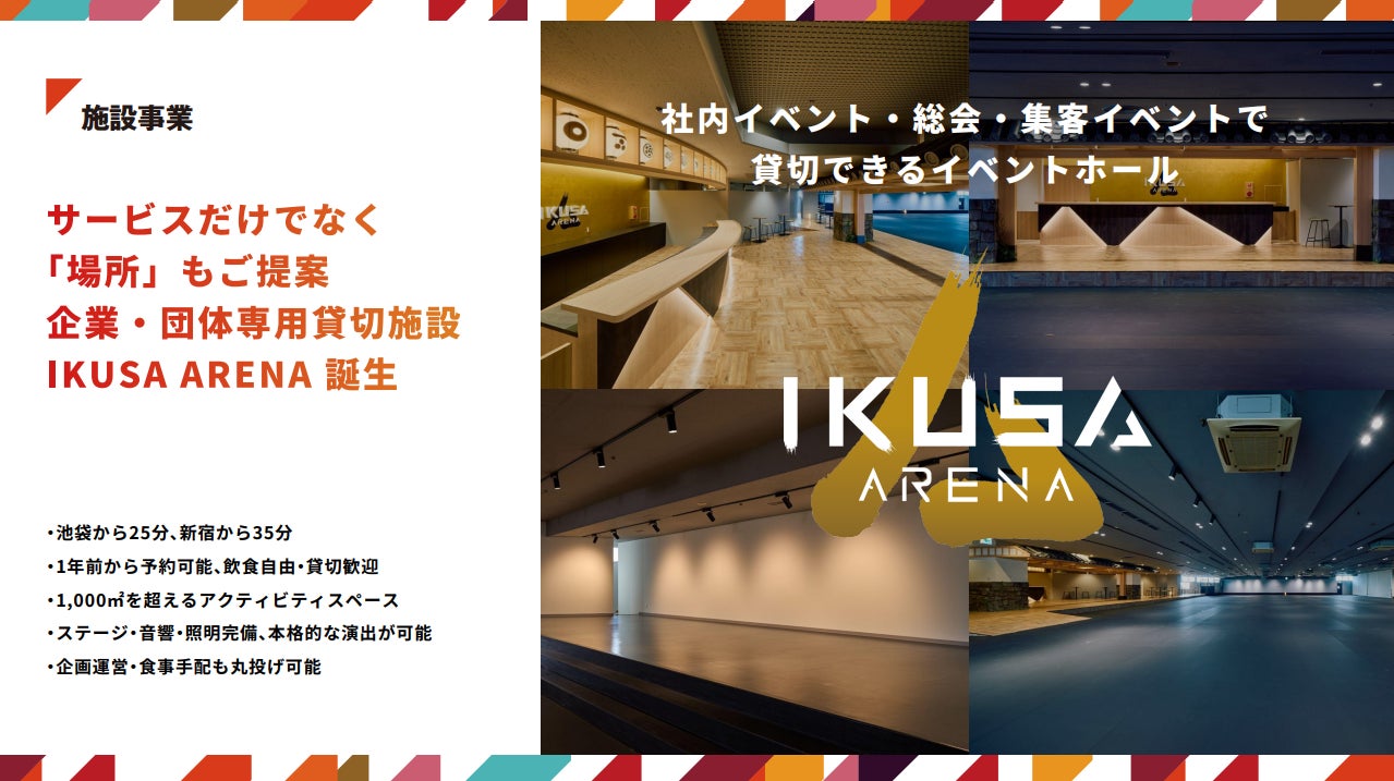 また、「アクティビティ」「フード」「場所」を一体で設計できる強みをさらに磨くため、自社施設「IKUSA ARENA」の知見を活かし、ARENA2号店の検討も進めていく方針です。