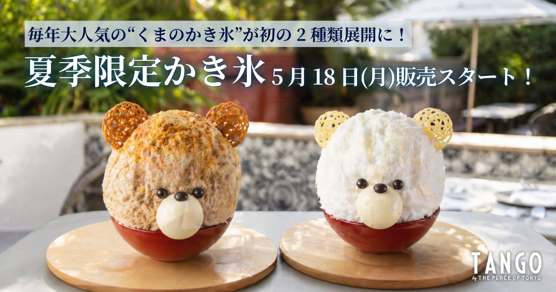 猛暑が続く日本の夏にひんやり可愛い癒しを!毎年大人気の“くまのかき氷”を初の2種類展開に。Terrace Dining TANGO夏季限定かき氷2026年5月18日(月)販売スタート!
