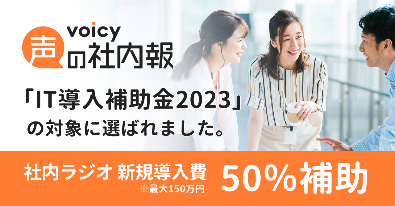 音声コミュニケーションツール「Voicy 声の社内報」がIT導入補助金2023の対象ツールに採択。導入費50%が補助対象となり、組織活性化を支援