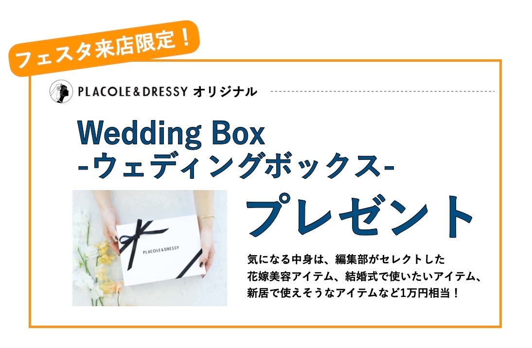 先着限定20組の花嫁様へ、1万円相当のアイテムが入ったウェディングボックスもプレゼント。