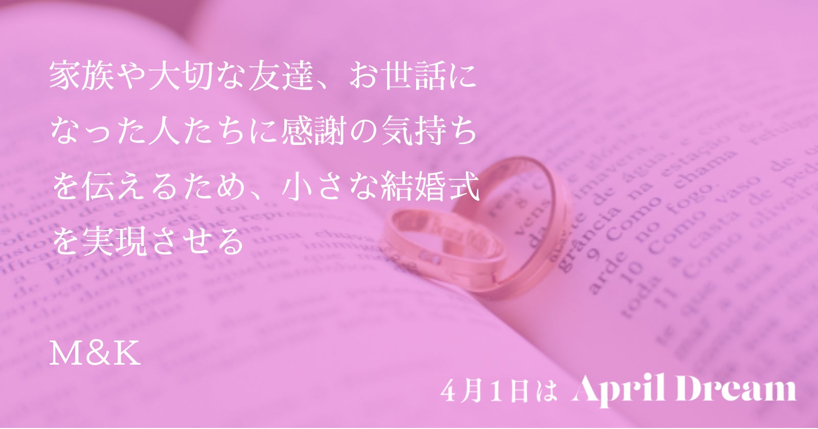 4月1日に合わせて、夫婦やカップルの夢を募集します!