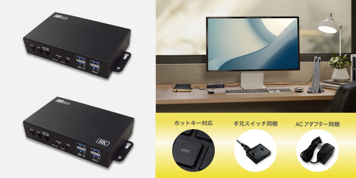 8K60Hz/4K120Hz対応モデルも登場!PC2台用HDMIパソコン切替器2製品、2025年2月12日発売