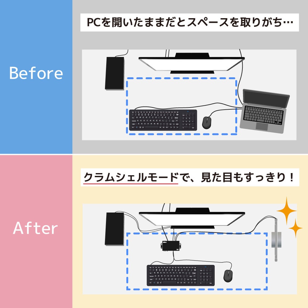 ・キーボード、ディスプレイ、マウスを2台のパソコンで切り替えて快適操作
