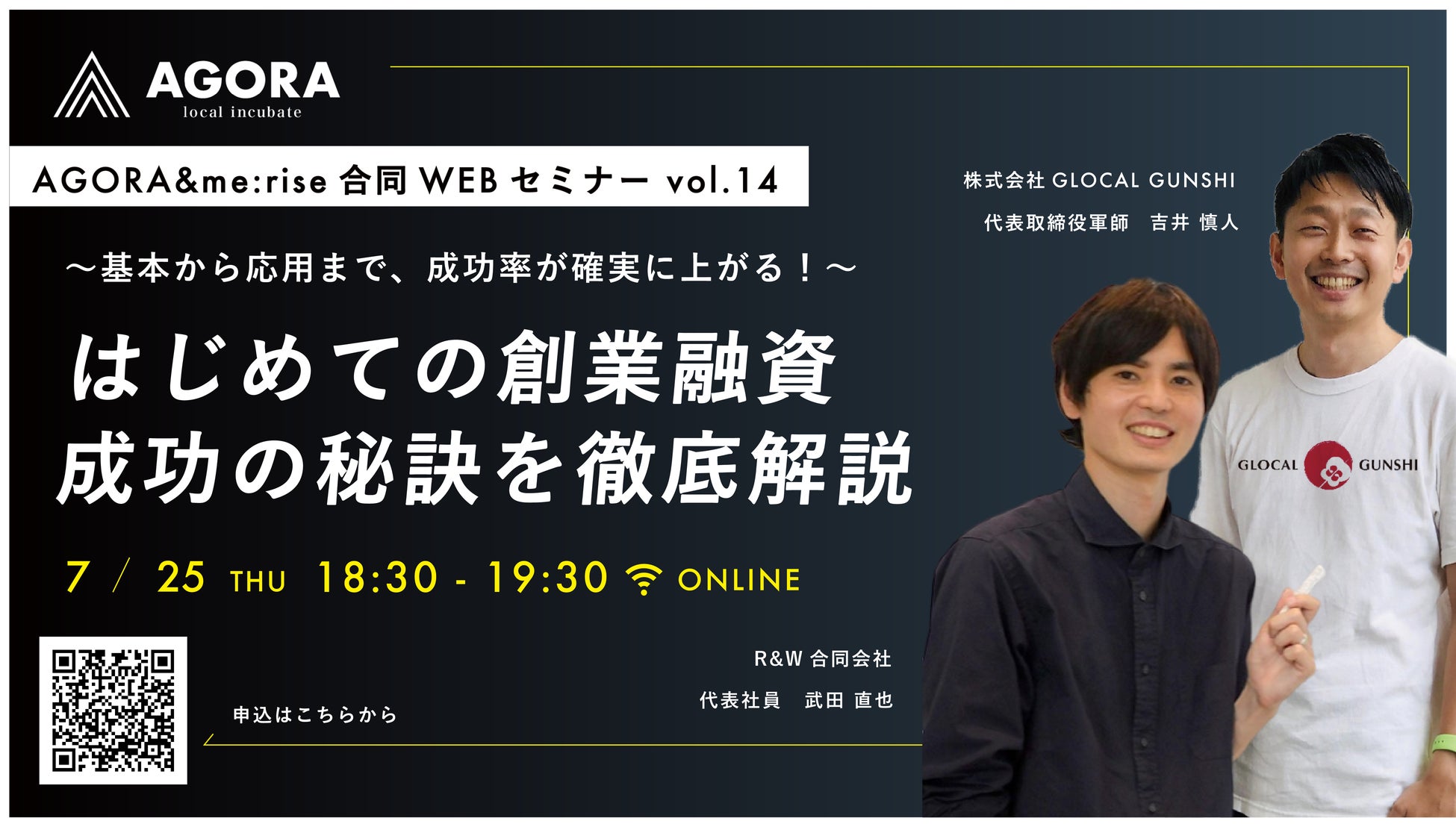 株式会社AGORAでは、2024年7月25日(木)に「創業融資:成功の秘訣」をテーマにした創業WEBセミナーを開催します。