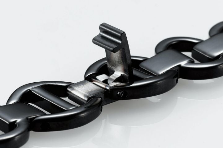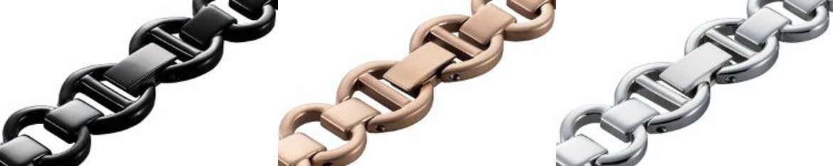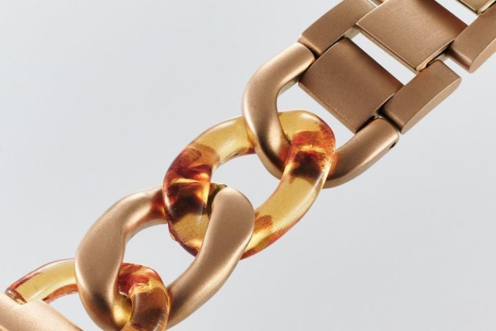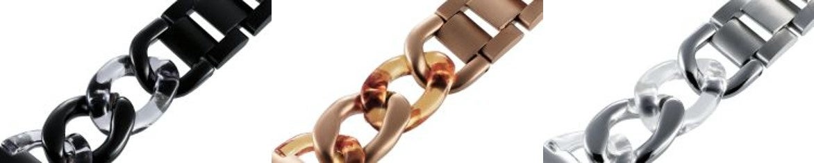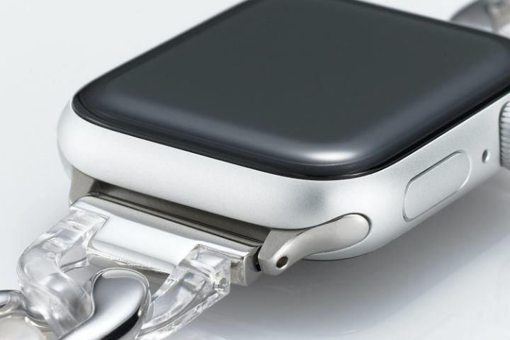 - 簡単にバンドの長さが調整可能!透明樹脂とステンレスの組み合わせが楽しめるチェーンタイプ