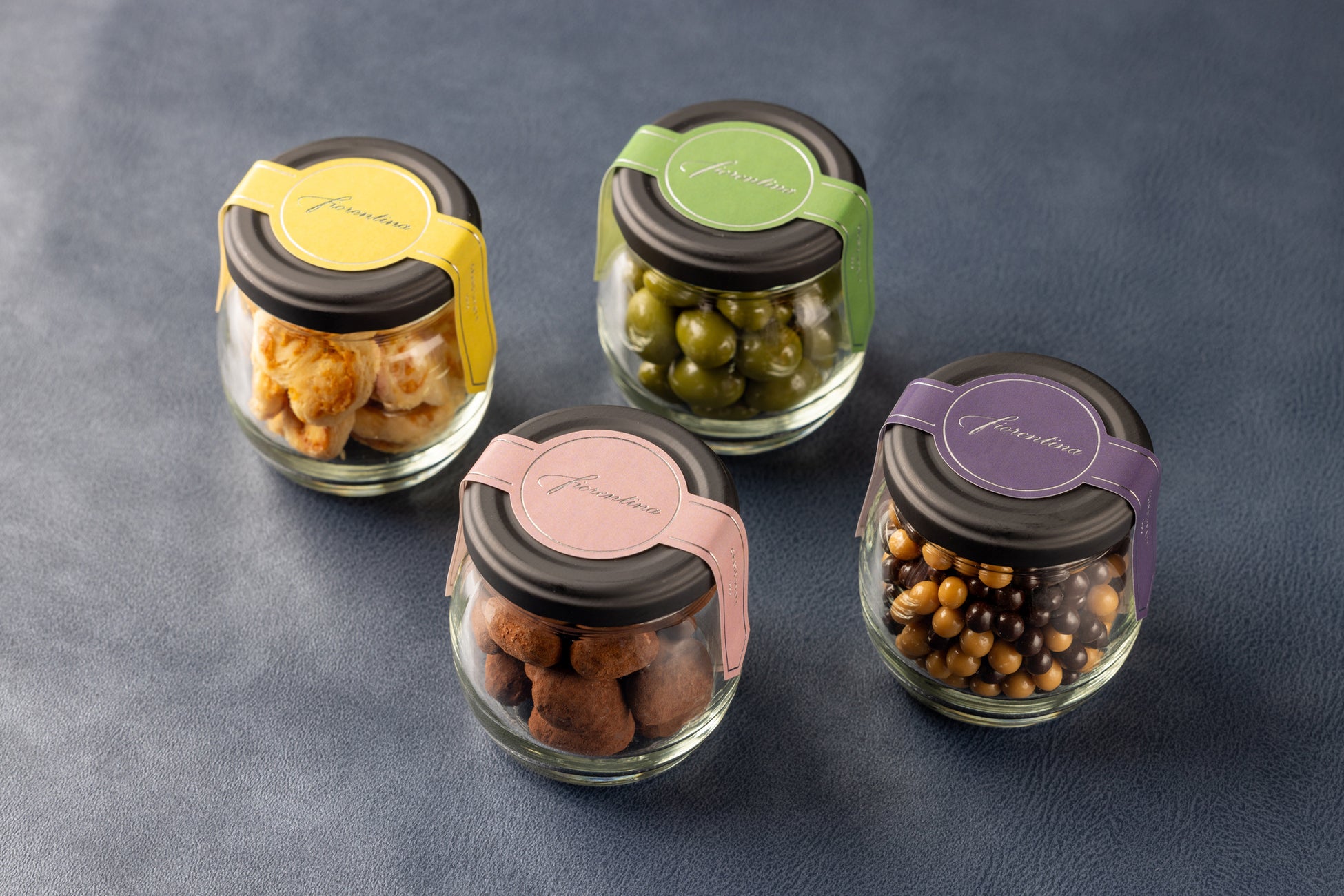 手土産にも最適な、可愛らしい見た目のスイーツジャーを4種類ご用意いたします。チーズの香りとパイのサクサクとした食感をお楽しみいただけるグリュイエールチーズ クッキー、香ばしいアーモンドとチョコレートの甘味が口いっぱいに広がるアマンディーヌ、キャラメルとチョコレートの2種をブレンドしたパールチョコレート、抹茶ソイと、個性的なフレーバーが揃います。