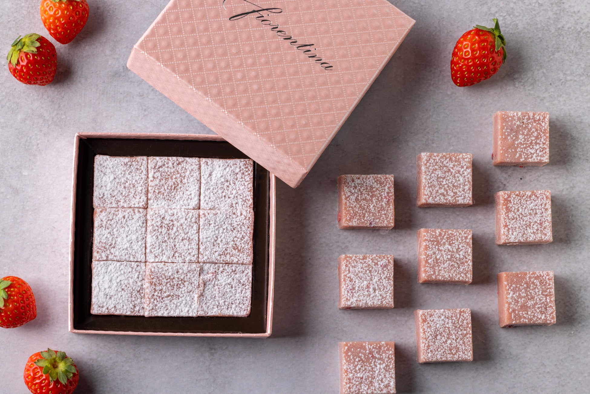甘酸っぱいいちごとホワイトチョコレート、生クリームをふんだんに使用した、口の中でとろけるようになめらかなストロベリー 生チョコレートです。いちごの酸味とホワイトチョコレートの甘味のマリアージュをお楽しみください。