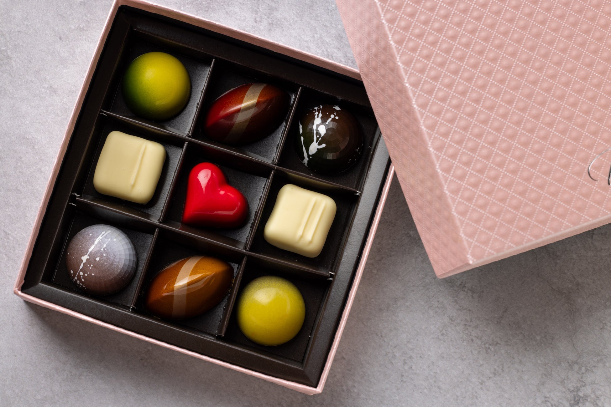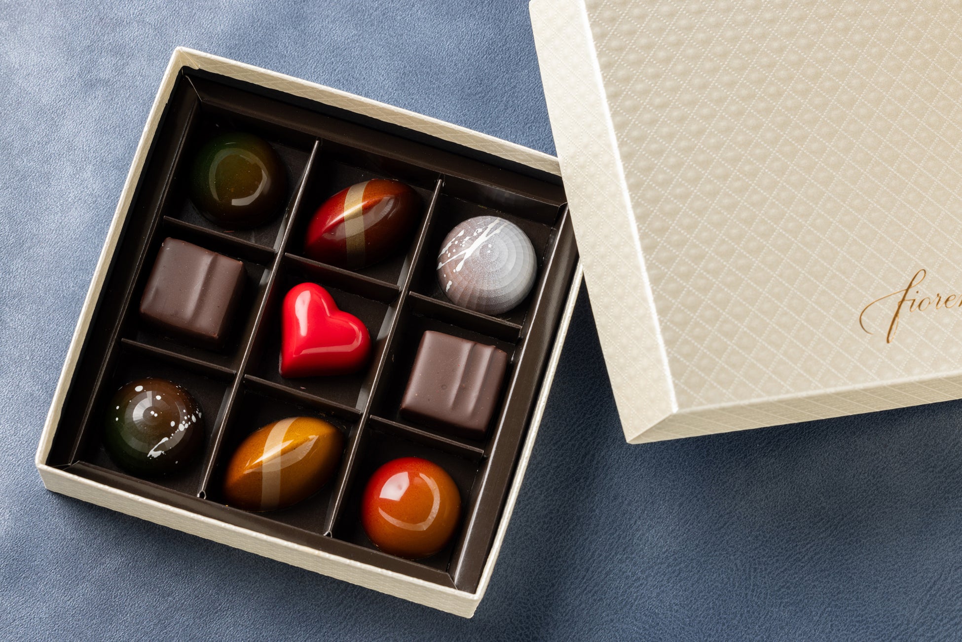 ゆず、プラリネカフェ、黒ゴマ抹茶、ピスタチオ、ストロベリー、ラズベリー、トンカ豆、プラリネココ、ベルガモットと9種類のバラエティー豊かなボンボンショコラを詰め合わせました。一粒一粒がまるで宝石のようなボンボンショコラのアソートは、飽きることなく大切な方とシェアしてもお楽しみいただけます。