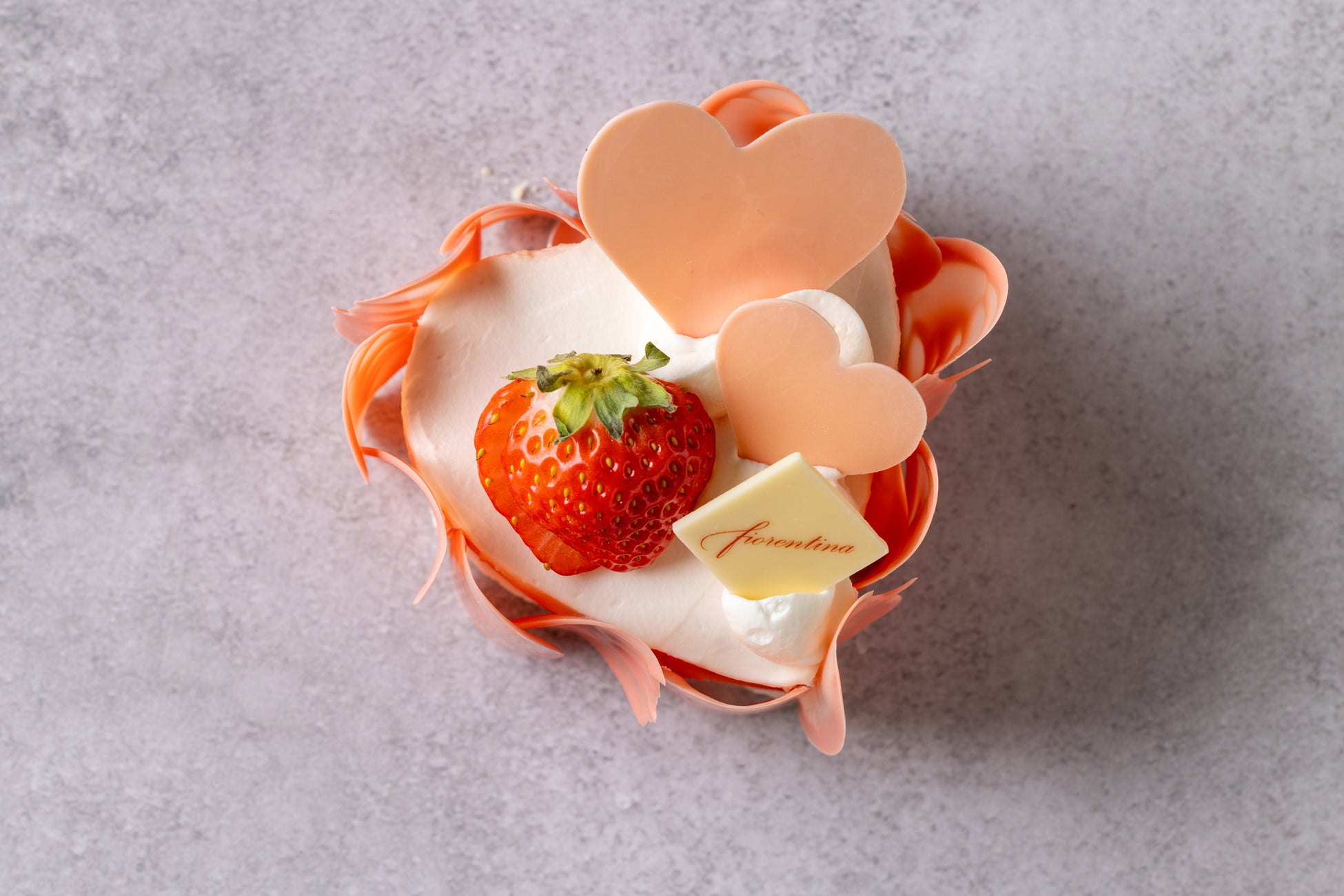 通常よりもさらに上質な食材でつくるグランド プレミアム ストロベリーショートケーキのホワイトデーバージョンです。スポンジには、フレッシュないちごをはじめ、ラズベリーやブルーベリーをリキュールに合わせた自家製シロップを染み込ませています。中には、タヒチ産バニラを使用したクレームブリュレやジャージー乳の生クリーム、いちごをサンド。ふわふわのクリームでおおったハートシェイプのケーキの上に、淡いピンクのハートチョコレートをトッピングし、かわいらしく仕上げました。「フィオレンティーナ ペストリーブティック」のシグネチャーケーキであるストロベリーショートケーキを、さらにワンランク上へと昇華させた、ホテルこだわりのプレミアムケーキです。