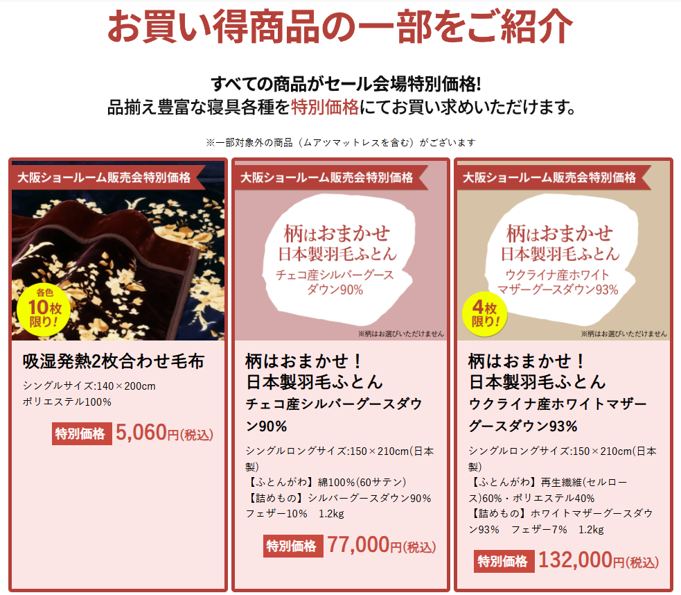 【昭和西川大阪ショールームあったか寝具フェア第2弾概要】 <3日間限定>