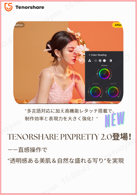Tenorshare PixPretty 2.0更新された機能: 画像美化と人像美化の強化で、理想のナチュラル盛りを実現 !