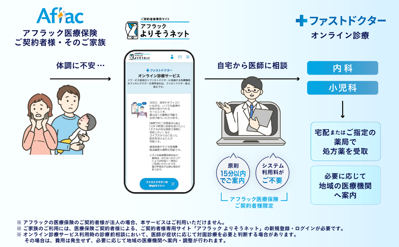 アフラックの医療保険のご契約者とご家族へファストドクターの「オンライン診療」を提供開始