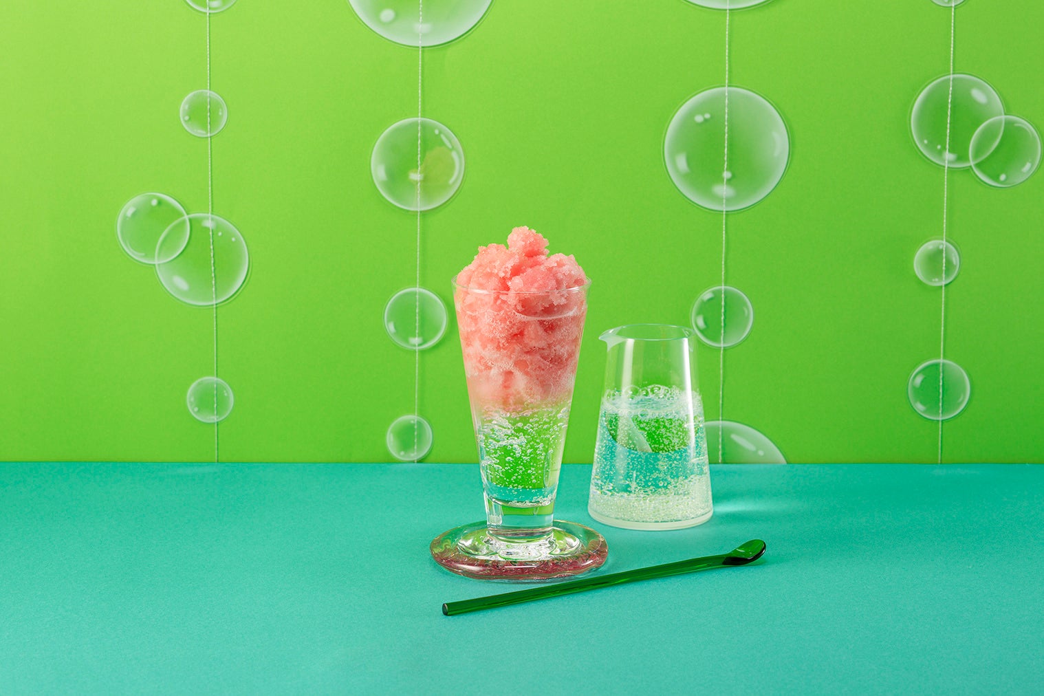 <スイカソーダ味> :スイカ果汁の甘さを活かしながら、炭酸感をバランスよく表現