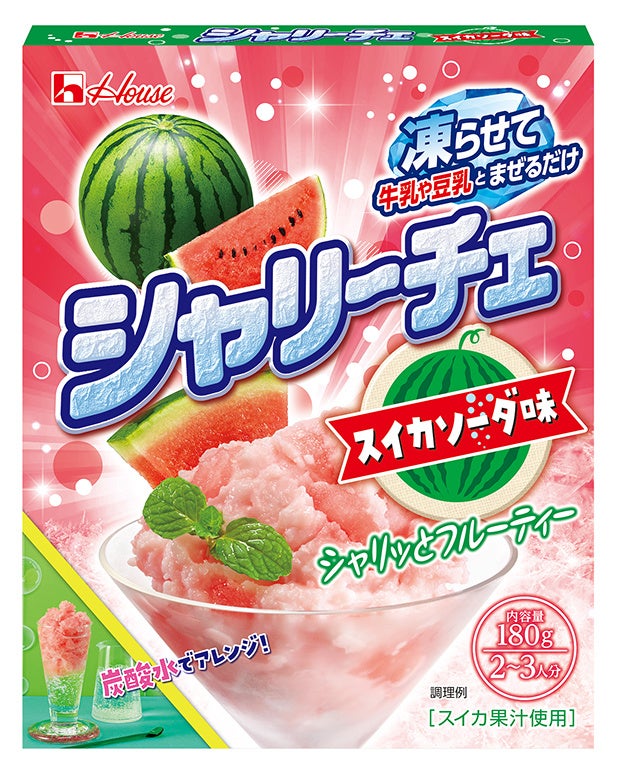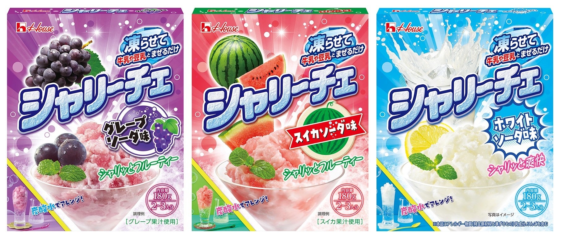 ハウス食品は、フルーチェの姉妹ブランド「シャリーチェ」より、<グレープソーダ味><スイカソーダ味><ホワイトソーダ味>を、4月18日からスーパーなどで夏期限定発売します。暑い季節に“ひんやり・シャリッと食感“が楽しめる「シャリーチェ」の今シーズンは、“炭酸の風味”をアップさせ、より爽快感のある味わいにリニューアルしました。また、炭酸飲料やアイスでも人気の高い<ホワイトソーダ味>を新たにラインアップに加えました。内容量180g、オープン価格(税別参考小売価格194円)。