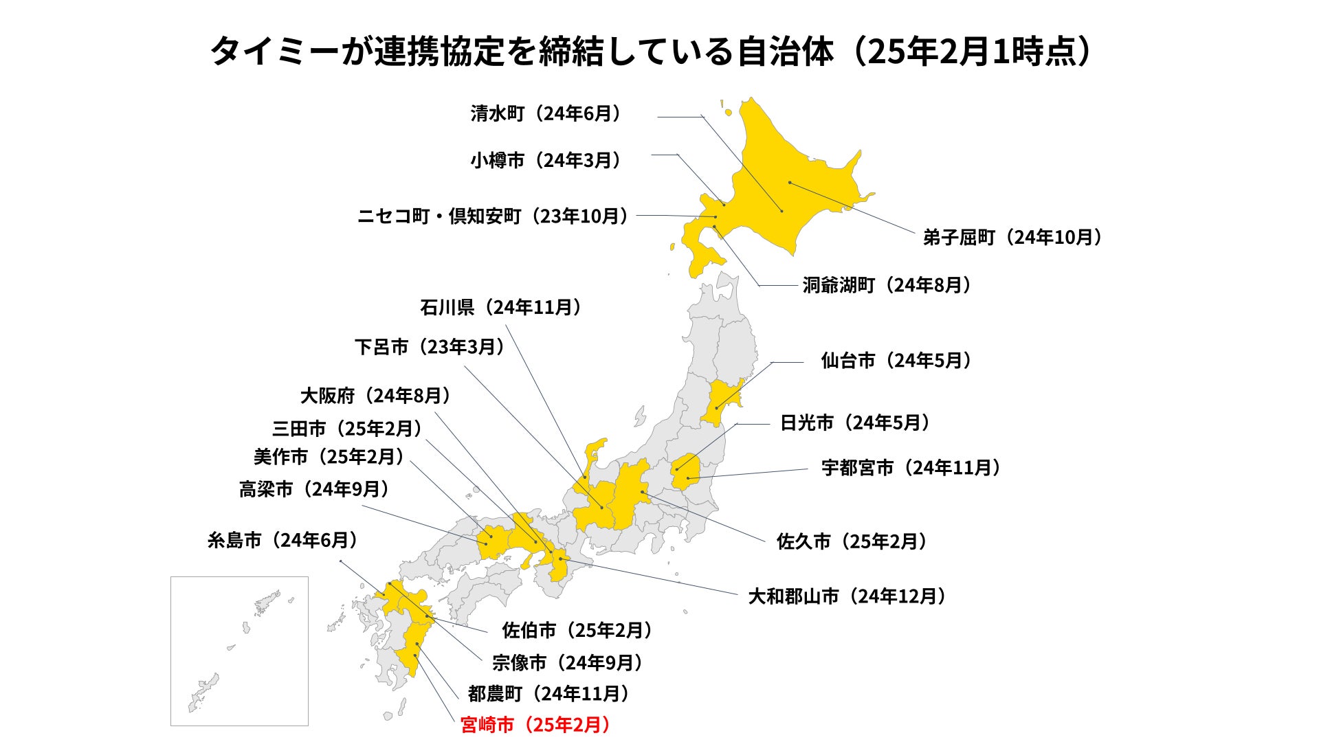 当社はこれまで13道府県・21自治体と連携協定を締結しており、今回の宮崎市との連携は22自治体目となります(※2)。