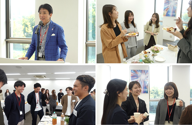 内定式には年齢の近い新卒入社の社員も参加し、内定者と立食形式での食事会を実施しました。先輩社員から生の声を聞く良い機会となり、より自然な形で交流を深めていただきました。