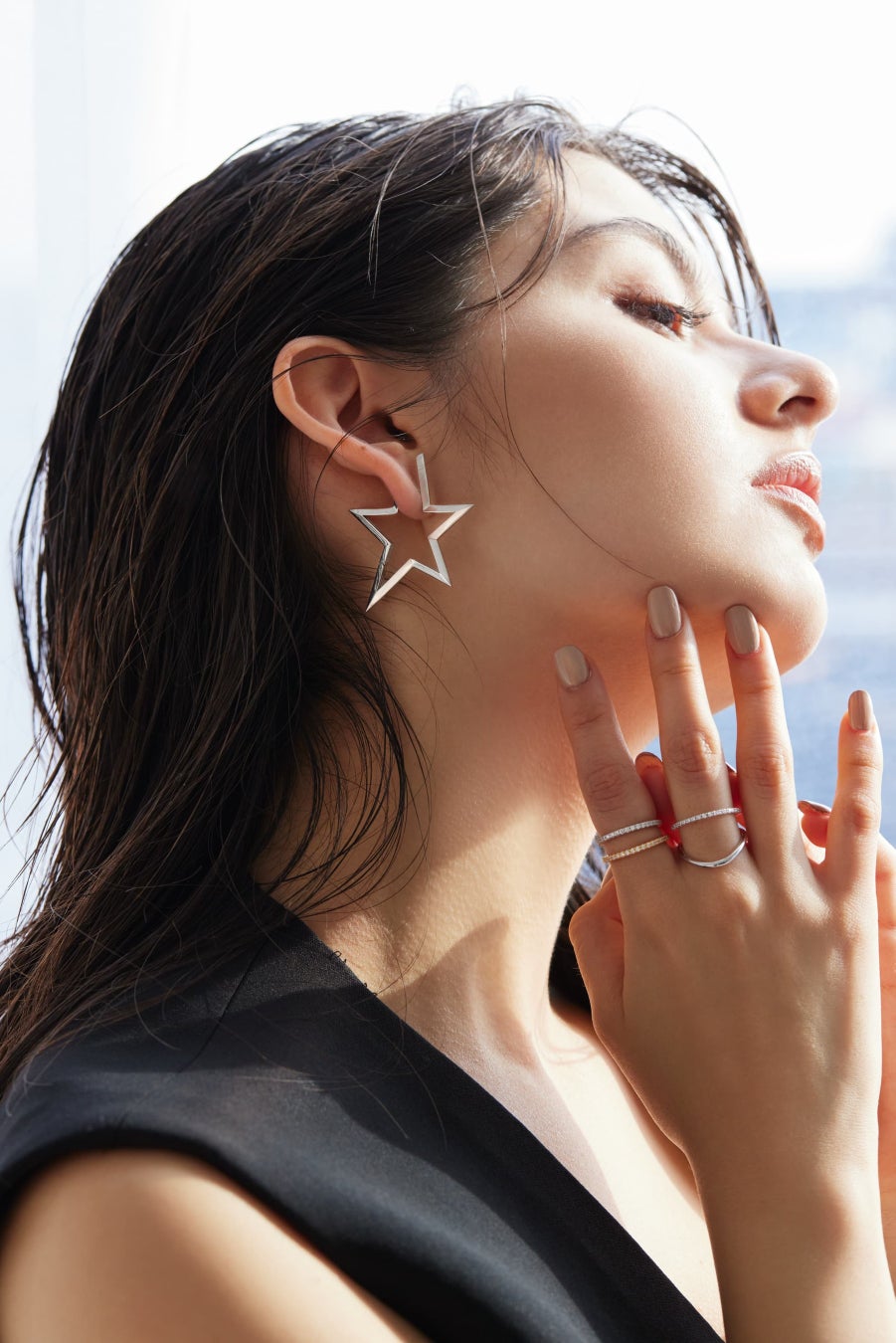 シンプルでスタイリッシュなFINELINETATTOO(ファインラインタトゥー)をイメージした星モチーフのピアスは、年齢やジェンダーに関係なく、大人が着けられるグラフィカルなデザイン。星は希望や夢を象徴するラッキーモチーフともされており、身に着ける人に自信を与えてくれます。