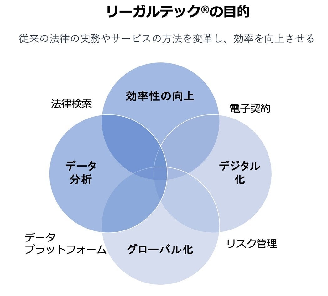 これらの要因が組み合わさることで、リーガルテック®︎のニーズが高まっているのです。従来の方法では対応しきれない新しい課題やニーズに答えるため、技術の導入や革新が進められています。
