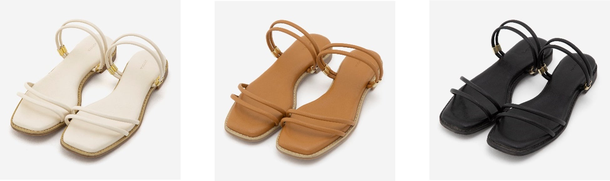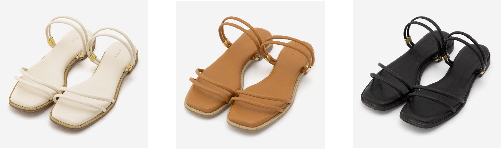 お客様の声から生まれた、きゃしゃなストラップ使いが上品な、2WAY仕様のフラットサンダル。