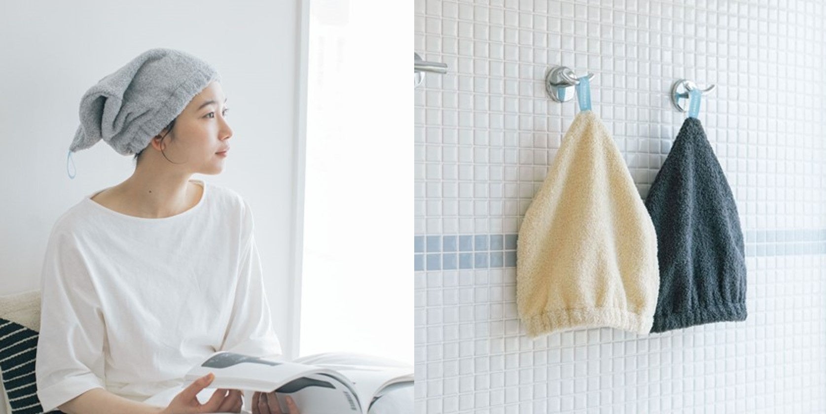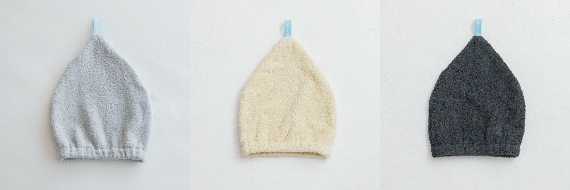 『くまもかわくタオルキャップ』に新色ライトグレーが登場!お風呂あがりにかぶるだけ、濡れた髪がみるみる乾きます。