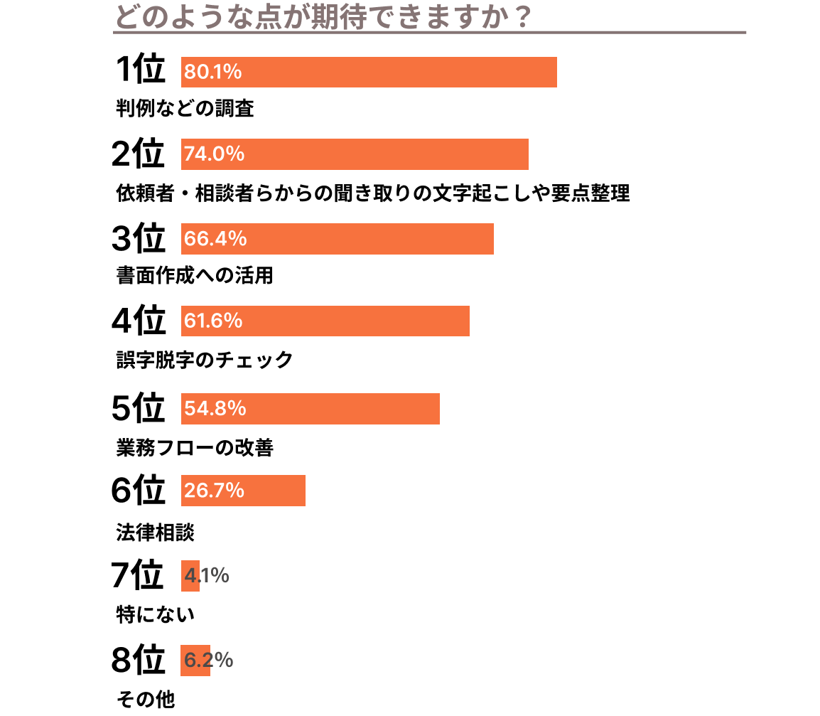 期待感 | 7割を超える弁護士がAI導入に期待と回答 |