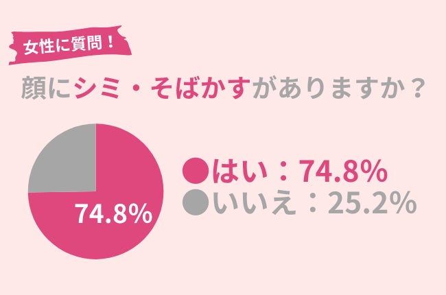 約75%の女性が、「顔にシミ・そばかすがある」と自覚しているようです。