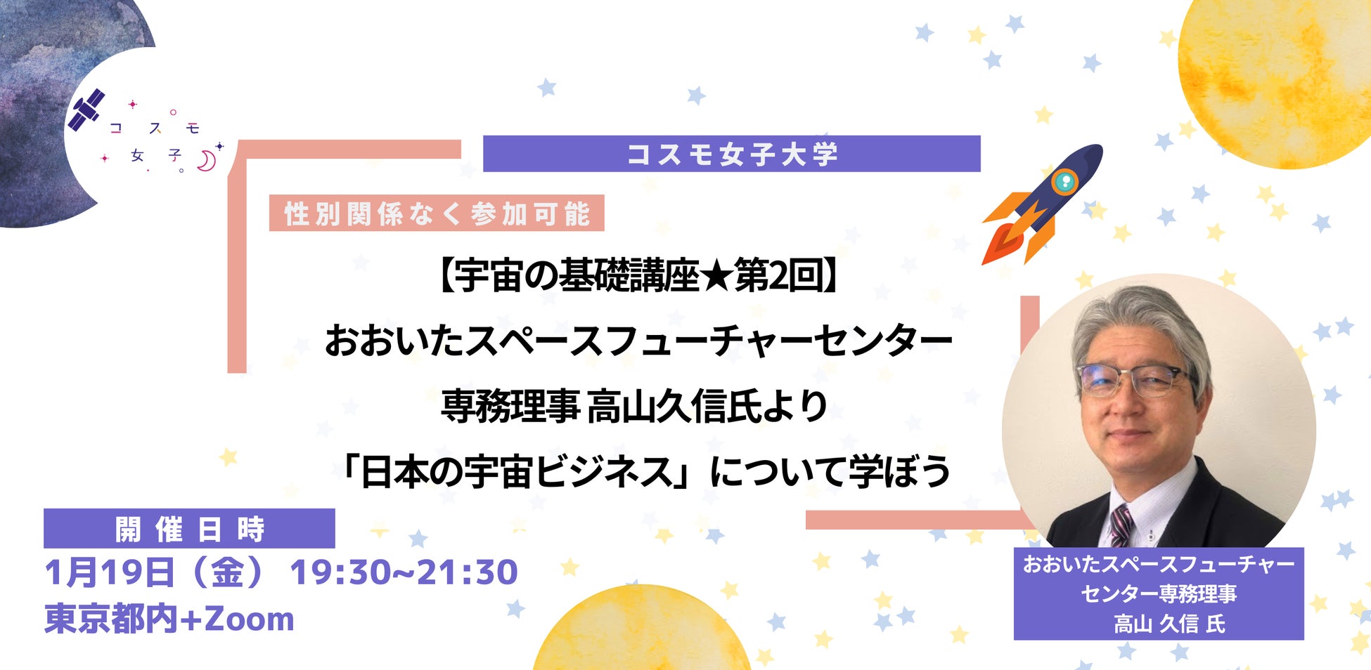 【宇宙の基礎講座】1/19(金)開催 おおいたスペースフューチャーセンター専務理事より「日本の宇宙ビジネス」について学ぼう