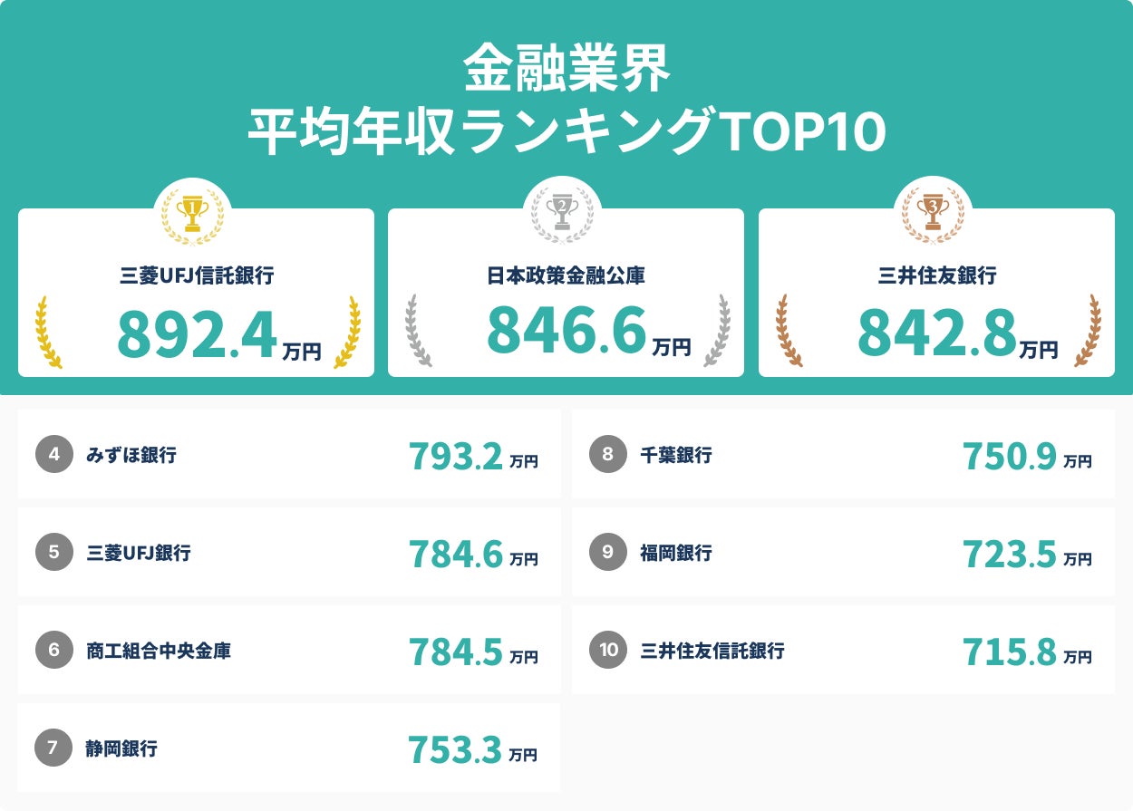 金融業界平均年収ランキングTOP10について