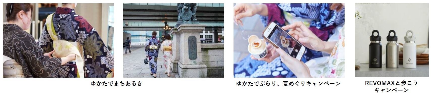 ゆかたの着付け&着崩れお直しサービスができる「ゆかたでまちあるき」や、インスタグラム投稿キャンペーンの「ゆかたでぶらり。夏めぐりキャンペーン」、保冷タンブラーREVOMAXとのタイアップ企画「REVOMAXと歩こうキャンペーン」など、この夏ならではの日本橋の街歩きを楽しめるキャンペーンも実施します。