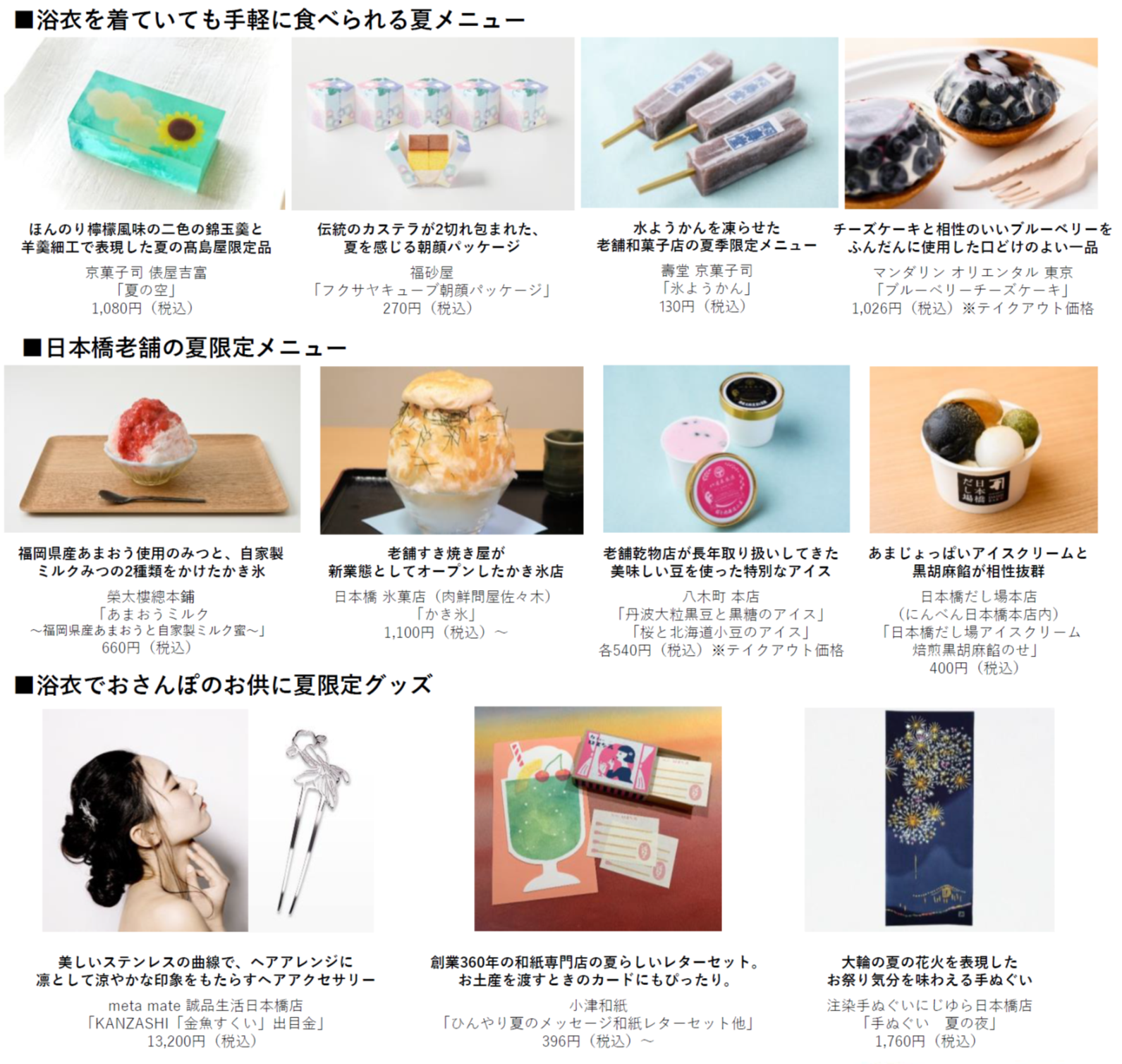 日本橋の約160店舗による浴衣でおさんぽにぴったりなメニューが大集合