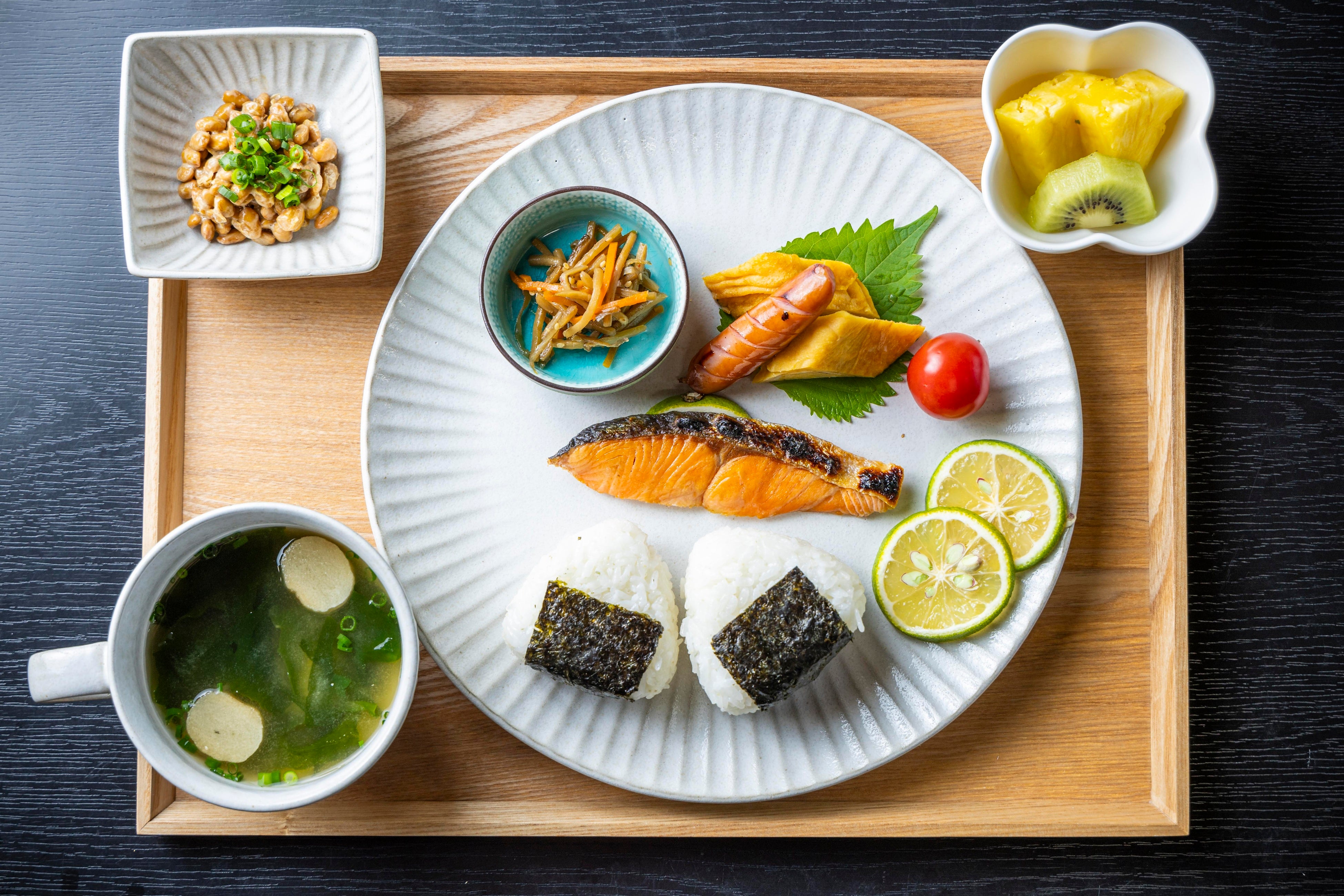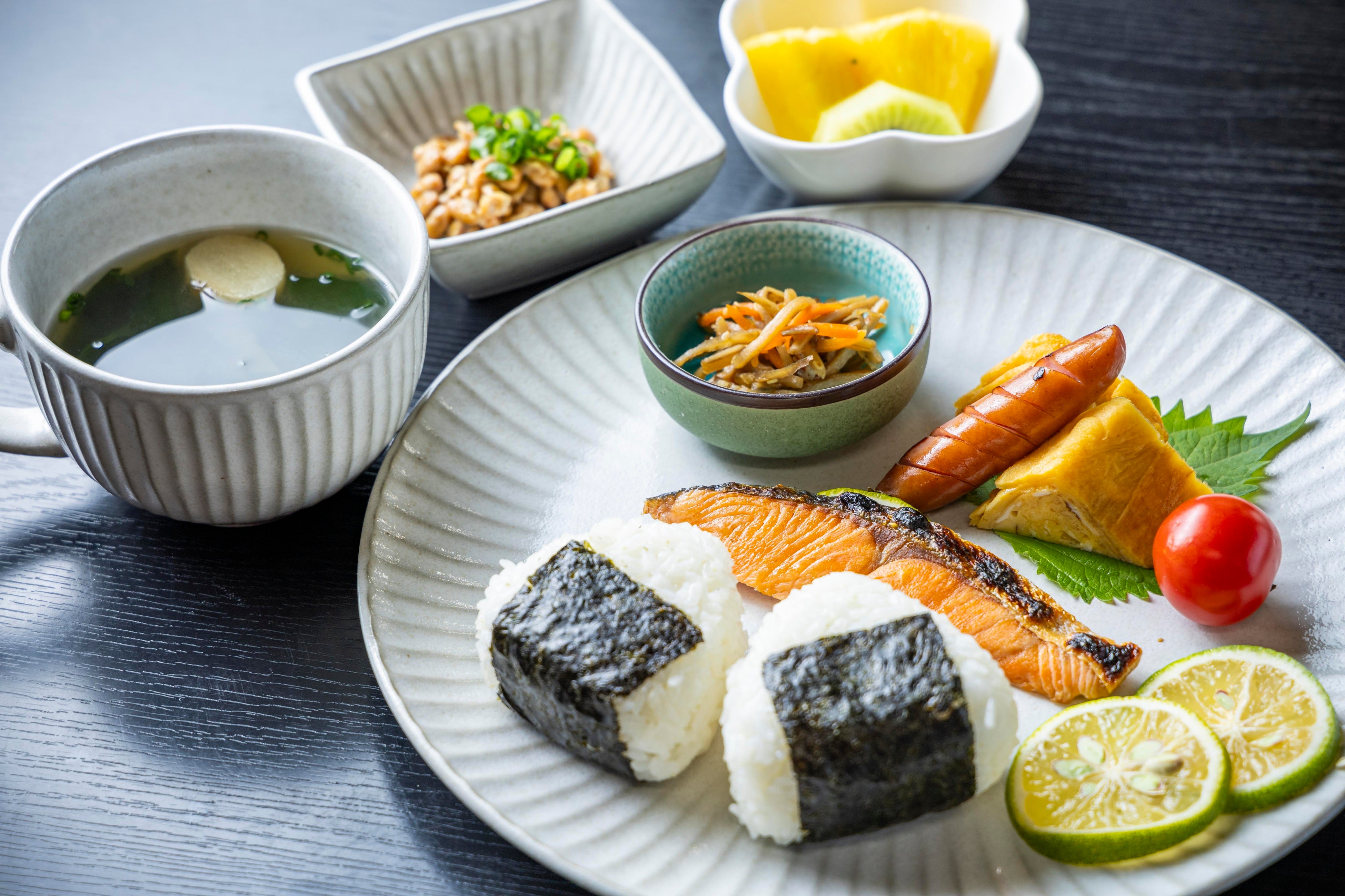 翌朝はおにぎりをはじめとした健康的な定食を是非お楽しみください。