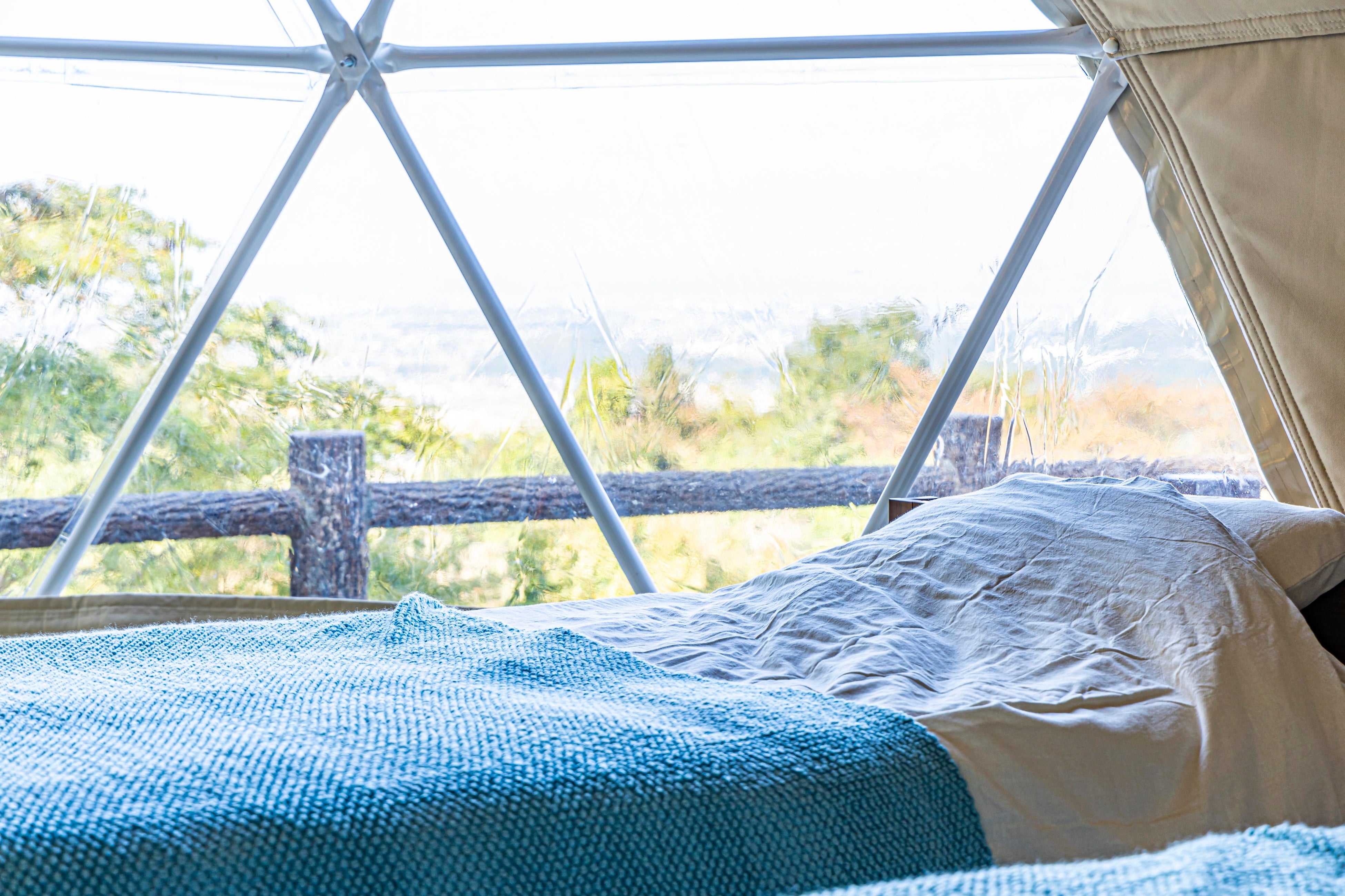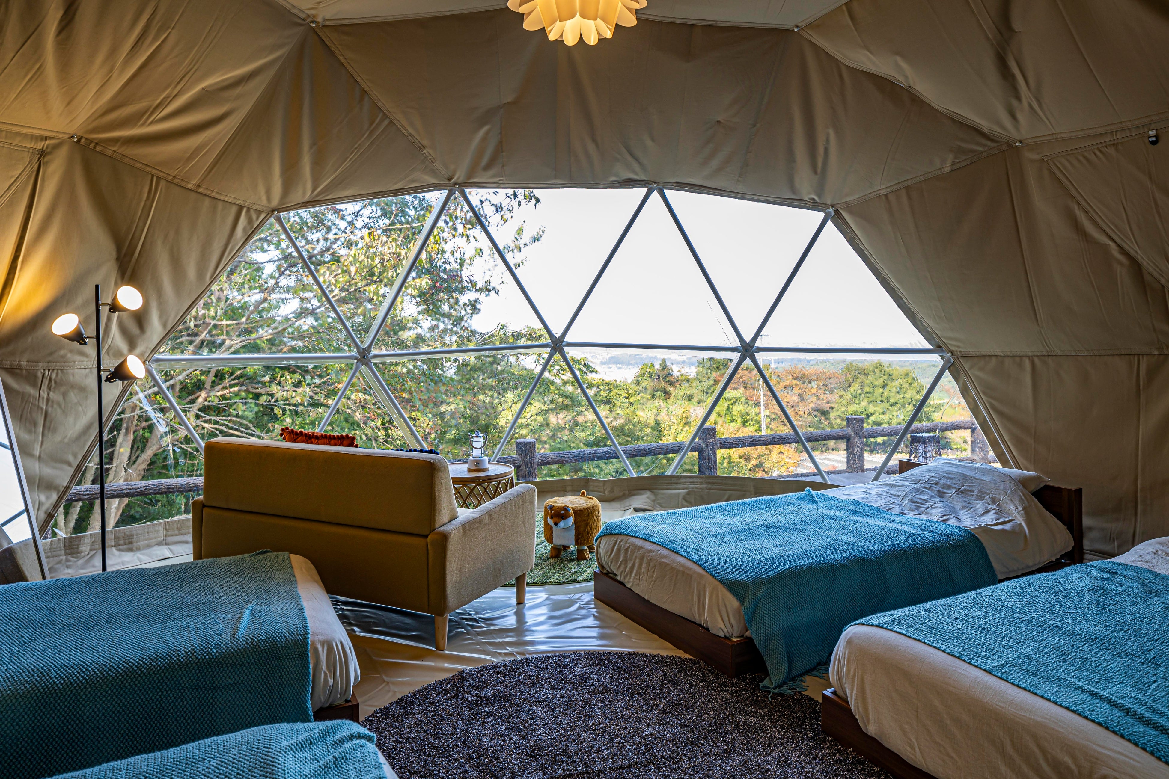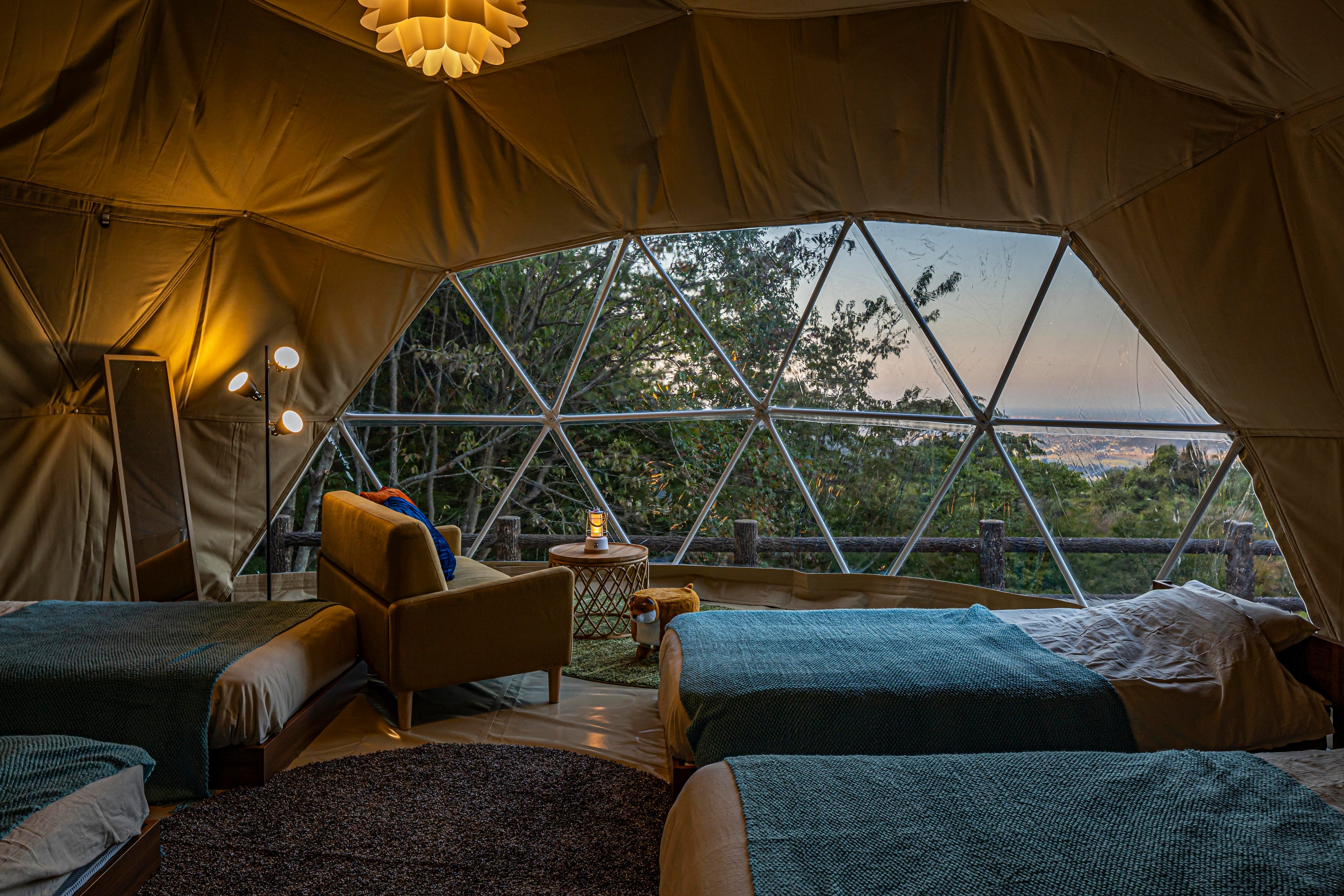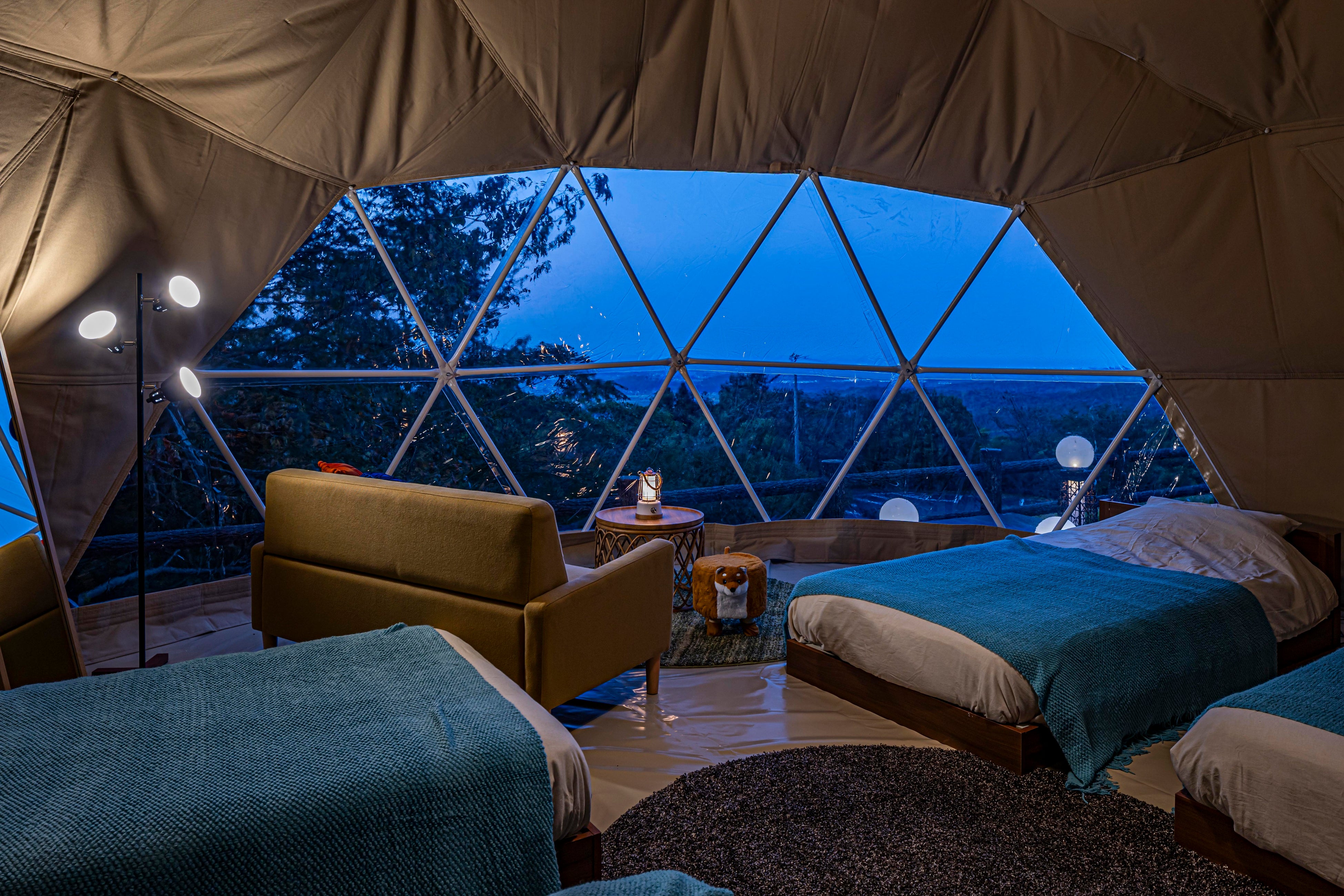 大自然が広がる丘に静かにたたずむグランピングドームは1日1組限定のプライベート空間。