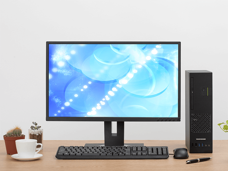 - コンパクトなTSUKUMO PC スリムタワーケースを採用