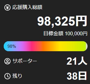本プロジェクトは開始からわずか1日で、目標金額の98%を達成しています。